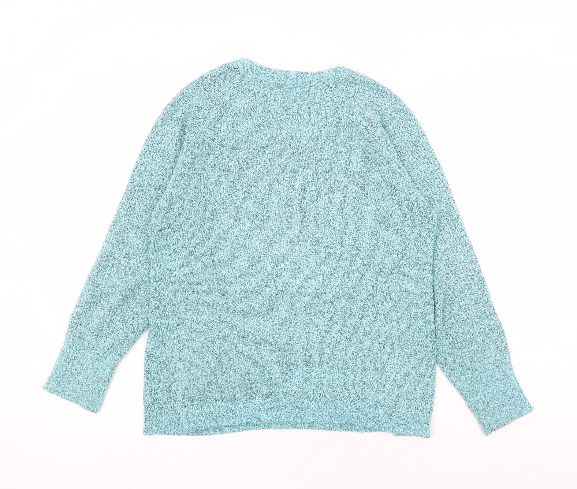 Womens Blue Round Neck Acetate Pullover Jumper Size M - Pockets