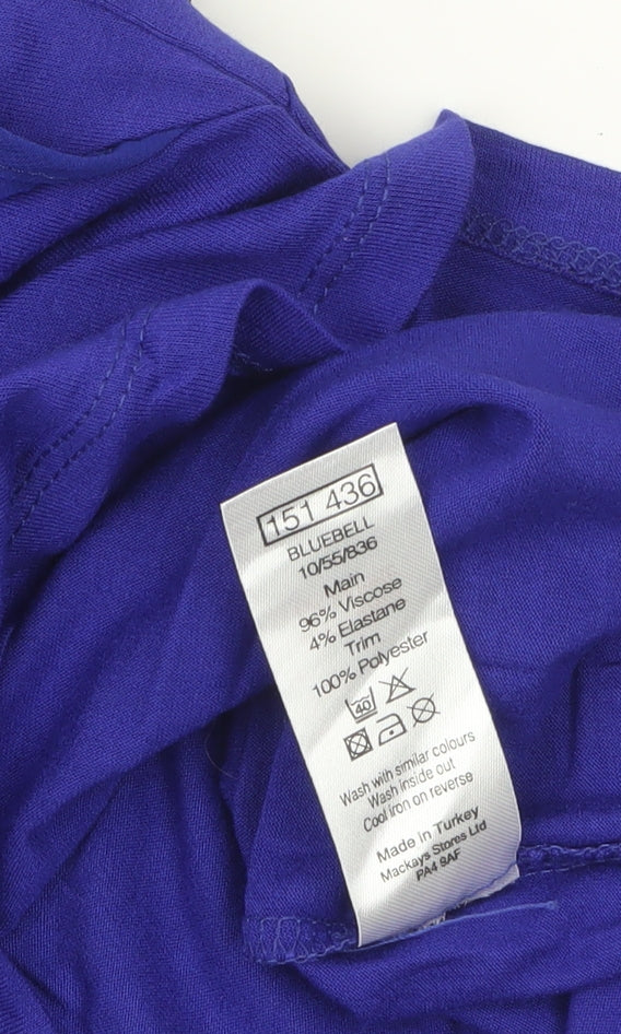 Add a touch of effortless elegance to your wardrobe with this beautiful blue ruffle sleeve blouse from M&Co. Designed for women who appreciate chic yet comfortable clothing, this sleeveless top combines feminine detailing with flattering simplicity. Crafted from a soft blend of viscose and elastane, with delicate polyester ruffle trims, it offers breathable comfort and a gentle stretch that moves with your body. The rich blue tone is both striking and versatile, ideal for pairing with jeans, skirts, or tailored trousers. The pullover style and wide straps provide ease and comfort, while the flutter sleeve design adds a graceful, floaty finish that enhances the silhouette. This lightweight, machine-washable blouse is perfect for spring and summer wear, whether for casual daytime outings or stylish evenings out. Its simple round neckline and smooth jersey fabric deliver a clean, polished look, while the quality construction ensures lasting wear. With a regular fit that flatters without clinging, it’s a dependable go-to piece you’ll reach for season after season. In excellent pre-loved condition, showing only minimal signs of gentle use, this M&Co blouse offers fantastic value for those seeking an affordable yet stylish addition to their collection. Whether dressed down with shorts for a beach-ready vibe or paired with smart trousers for a party or casual night out, this versatile top suits many occasions. Embrace easy elegance with this standout piece from M&Co — a truly timeless choice for the modern woman looking to balance comfort, colour, and effortless style.