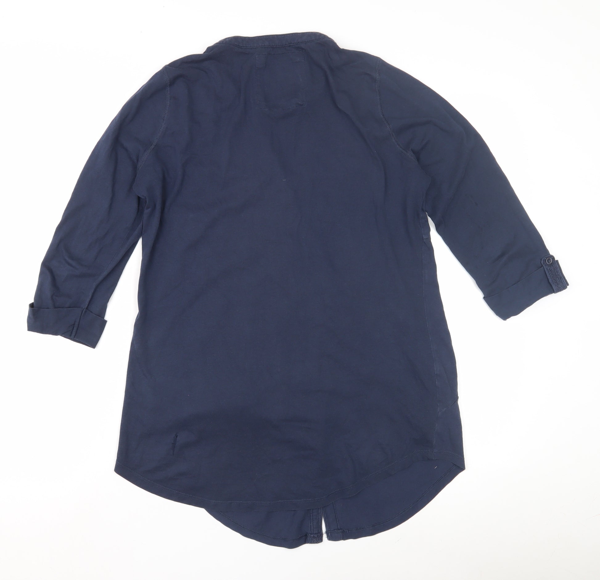 Elevate your casual wardrobe with this versatile M&Co blouse, perfectly designed for comfort and style. Crafted from 100% cotton, this blouse delivers a soft and breathable feel, making it ideal for everyday wear. The rich blue hue adds a touch of sophistication to your ensembles, while the solid pattern ensures timeless appeal. Featuring a flattering V-neckline and 3/4 roll tab sleeves, this blouse offers a blend of contemporary style and ease of use. Its button closure allows for a secure fit, while the additional pockets provide functionality on the go. This top is machine washable, making it easy to care for and perfect for all seasons. Despite some slight fabric wear on the back, the blouse remains in very good condition, offering you a fashionable piece at an attractive price. Whether you're heading to a brunch or running errands, this M&Co blouse transitions effortlessly from casual to chic. Don't miss the opportunity to add this staple to your wardrobe at an excellent value.