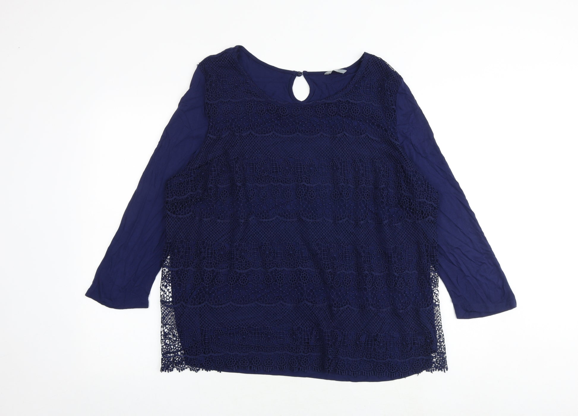 Womens Blue Viscose Basic Blouse Size 22 Round Neck