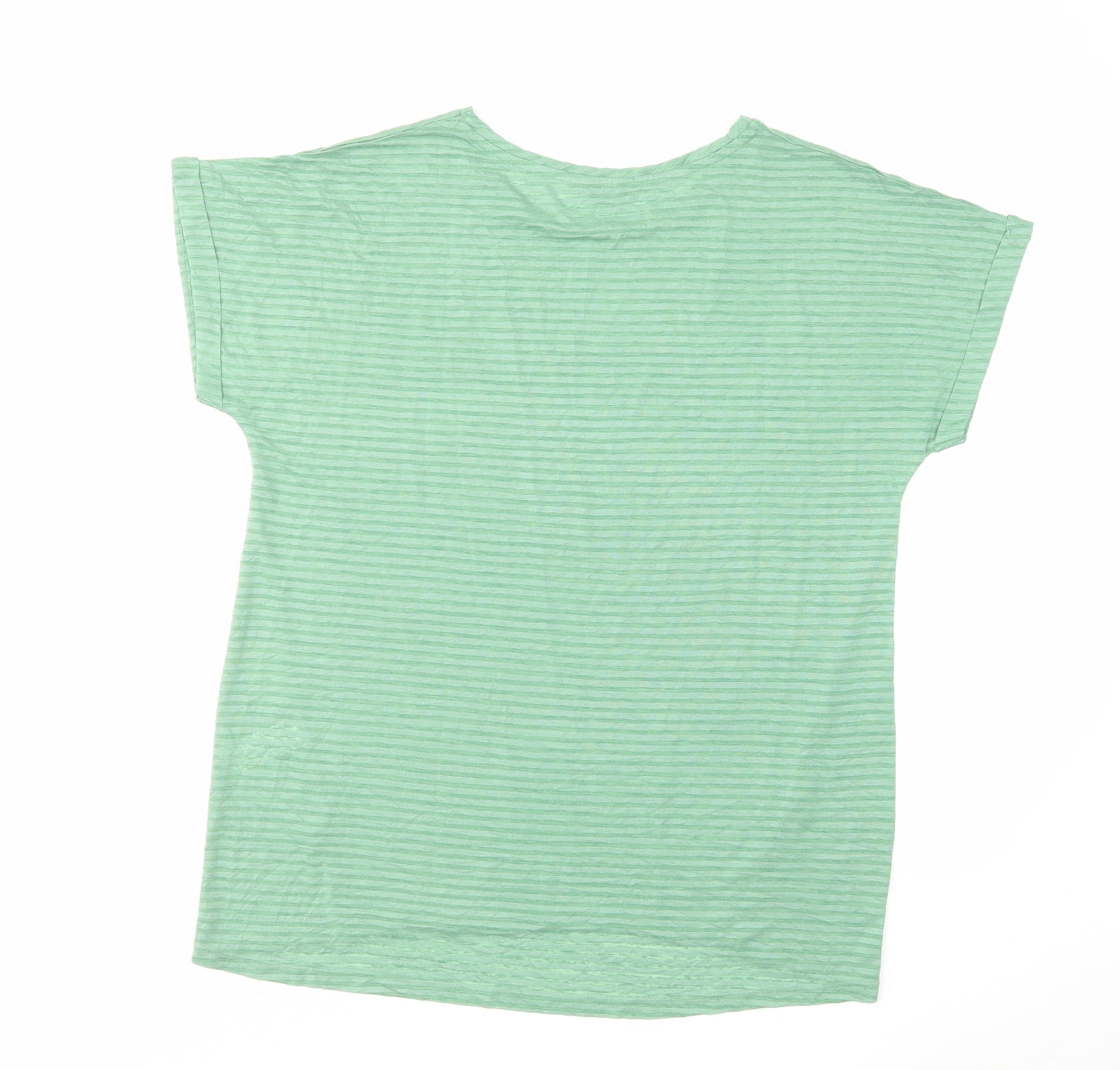 Womens Green Striped Polyester Basic T-Shirt Size 16 Crew Neck