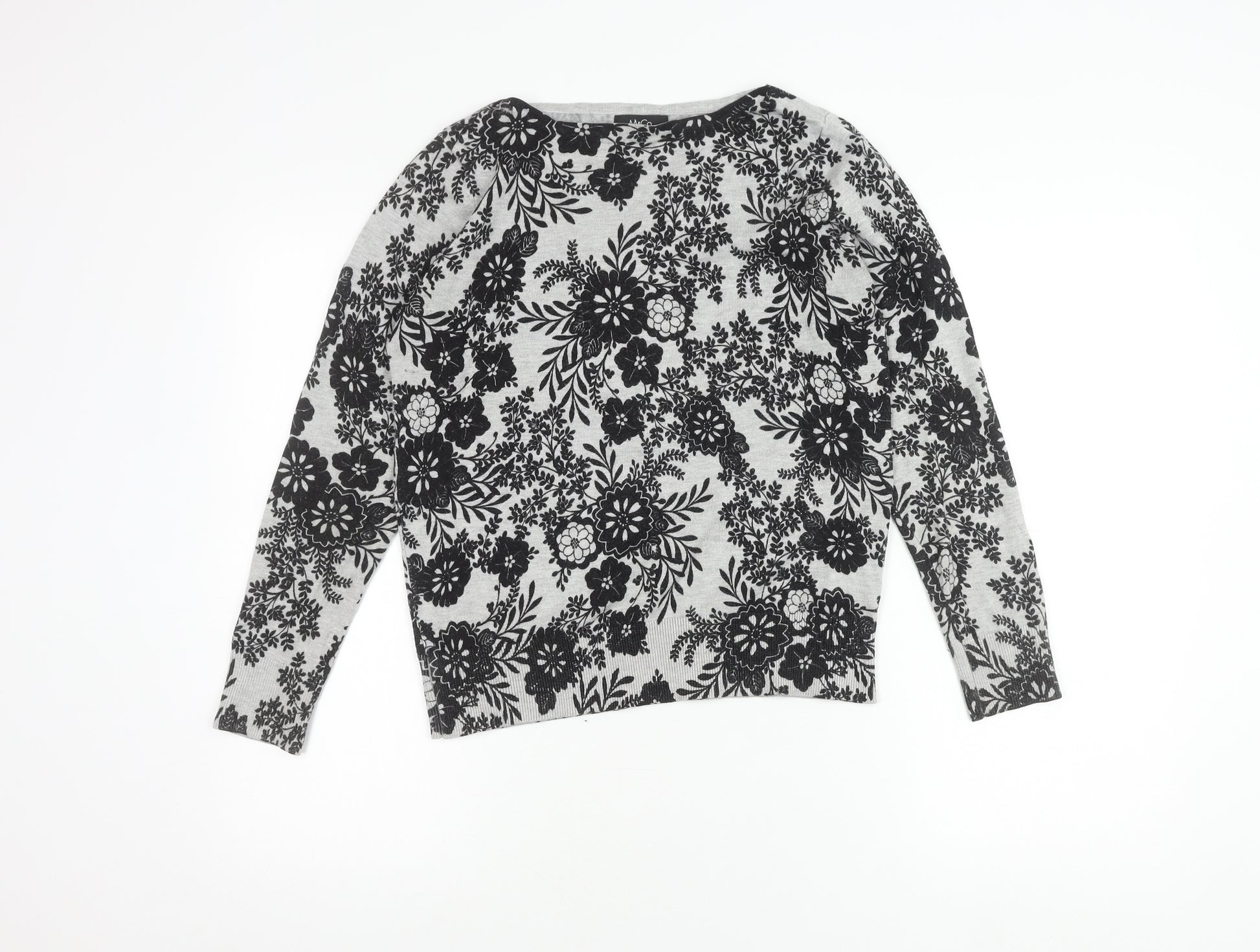 Elevate your wardrobe with this elegant M&Co Women's Grey Floral Pullover Jumper. Perfectly crafted for comfort and style, this regular fit jumper is ideal for the autumn and winter seasons. The tight-knit fabric ensures a snug, cosy feel, while the classic crew neck and long sleeves provide a timeless look. Adorned with an all-over floral pattern, this piece offers a touch of sophistication to any casual occasion. Designed for easy maintenance, this jumper is machine washable, making it a practical yet stylish addition to your collection. Pair with jeans or a skirt for a chic everyday ensemble.