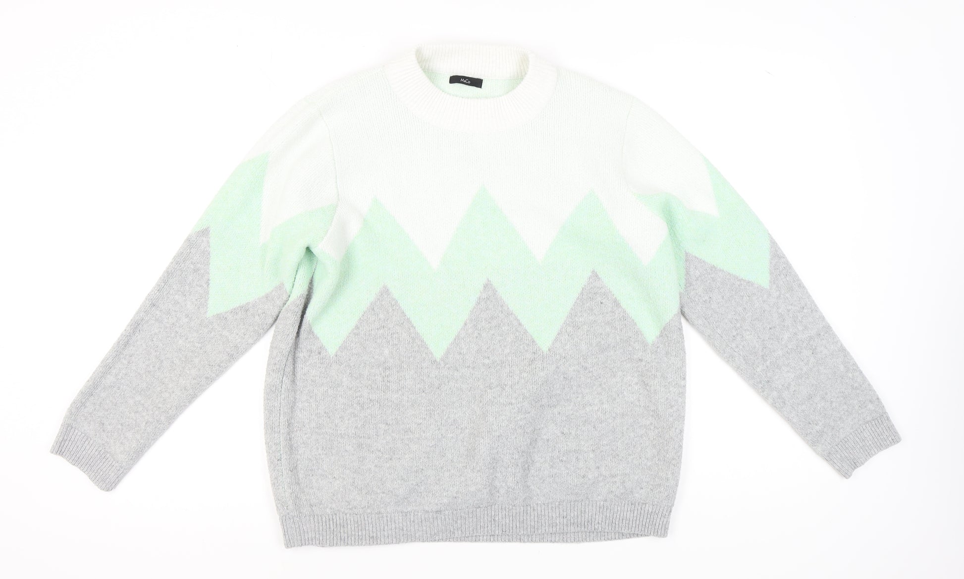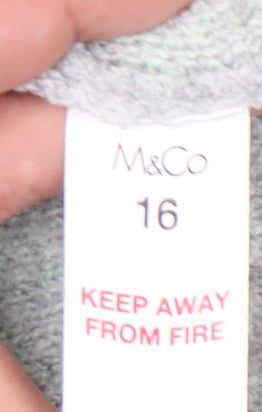 Elevate your autumn and winter wardrobe with this stylish M&Co Women's Pullover Jumper. This chic grey jumper, featuring a striking geometric pattern in mint accents, is perfect for bringing a touch of sophistication to your casual outfits. Designed with a comfortable crew neck and long sleeves, this jumper offers a regular fit that is both breathable and lightweight, making it an ideal choice for layering during cooler days. Crafted from a blend of 97% polyester and 3% elastane, it ensures a soft touch and is easy to care for, boasting machine washable convenience. Perfect for everyday casual occasions, this jumper will seamlessly pair with jeans or leggings for a relaxed yet refined look. The M&Co label assures quality, while its regular size 16 fit is tailored for women who appreciate style and comfort. Whether you're off to a casual outing or just lounging at home, this jumper will become a go-to piece in your collection. Grab this must-have addition to your wardrobe and make a stylish statement wherever you go.