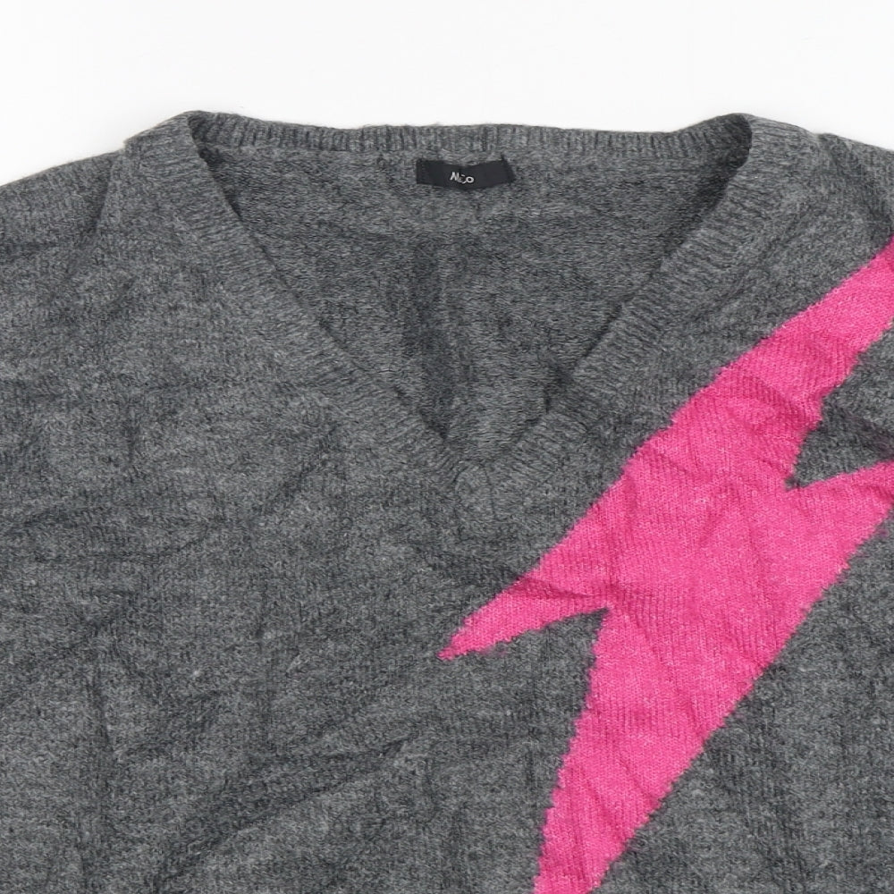 Womens Grey V-Neck Acrylic Pullover Jumper Size 16
