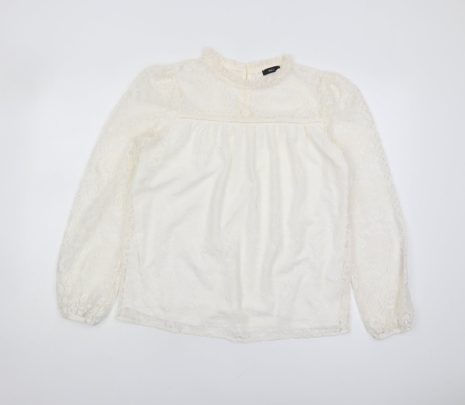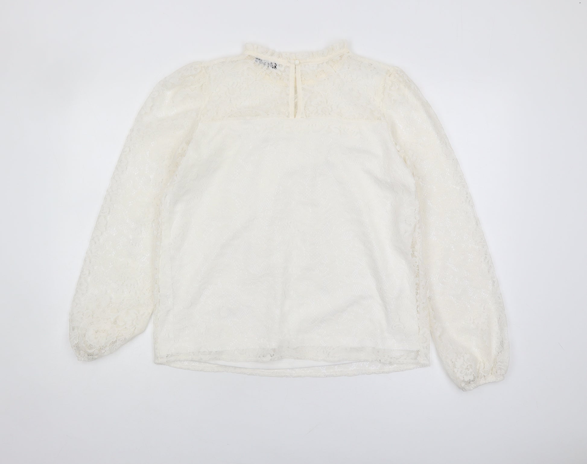 This exquisite M&Co blouse in a timeless ivory lace design is a versatile addition to any wardrobe. Crafted from high-quality polyester, it ensures comfort and durability while offering an elegant look. The high neck and full-length puff sleeves add a touch of sophistication, making it suitable for casual outings or cocktail gatherings. The solid lace fabric exudes a classic charm, making it perfect for spring, summer, and autumn occasions. Designed for women, this regular fit blouse in size 10 promises a flattering silhouette. Whether paired with jeans for a casual day or accessorised for an evening event, this M&Co blouse will elevate your style effortlessly. Easy to maintain with machine-washable care, keeping it pristine is a breeze. Experience the blend of classic elegance and modern flair with this remarkable lace blouse, a must-have for any fashion-conscious individual.