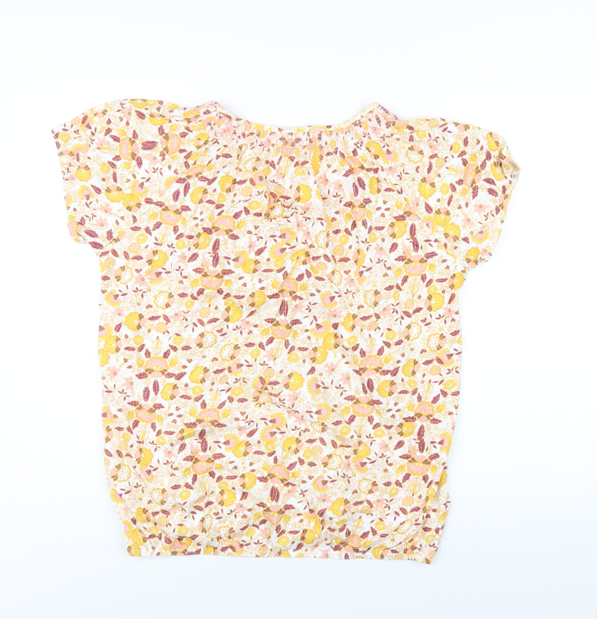 Womens Multicoloured Floral Cotton Basic T-Shirt Size 14 Boat Neck