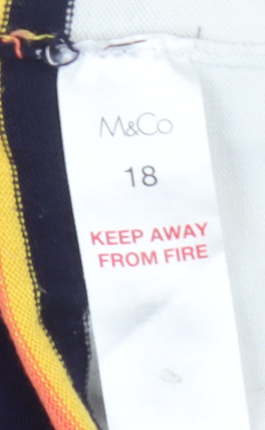 Elevate your wardrobe with this M&Co Multicoloured Striped Pullover Jumper, perfect for adding a splash of colour to your outfit. Crafted from a blend of 70% viscose and 30% nylon, this lightweight yet warm jumper ensures comfort and durability, making it ideal for the autumn and winter seasons. The regular fit and crew neck provides a classic style, while the tight-knit fabric gives it a sophisticated finish. With long sleeves and a striped pattern, this jumper is a fantastic choice for casual occasions, whether you’re heading out to brunch or enjoying a cosy day at home.Designed for women, this jumper fits size 18 and offers a regular size type. Its multicoloured stripes will effortlessly complement numerous outfits, making it a versatile piece in your collection. Easy to care for, this jumper is machine washable, adding an extra layer of convenience to your lifestyle. Despite being in excellent condition with only minimal signs of wear, this piece is available to you at a fantastic price. Enhance your seasonal wardrobe with this eye-catching, comfortable and stylish jumper from M&Co.