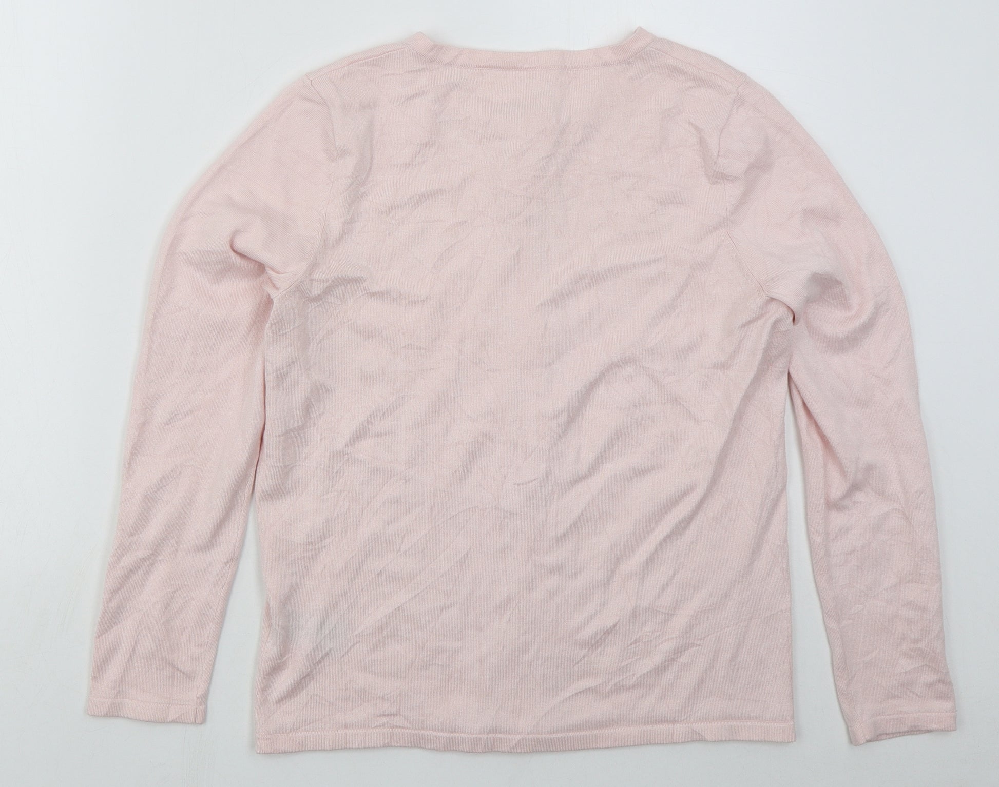 Womens Pink Crew Neck Viscose Full Zip Jumper Size 14