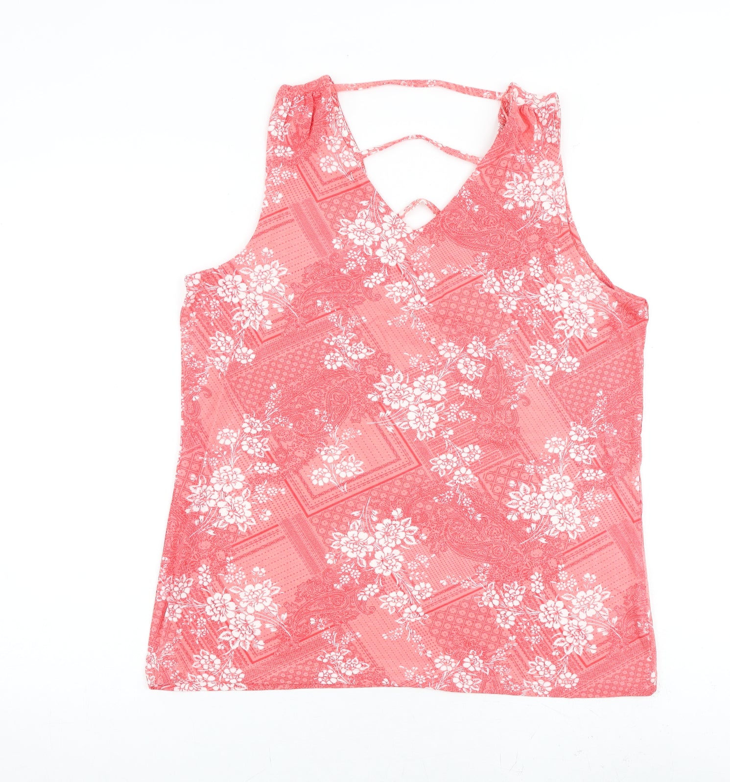Womens Pink Geometric 100% Cotton Basic Tank Size 20 V-Neck