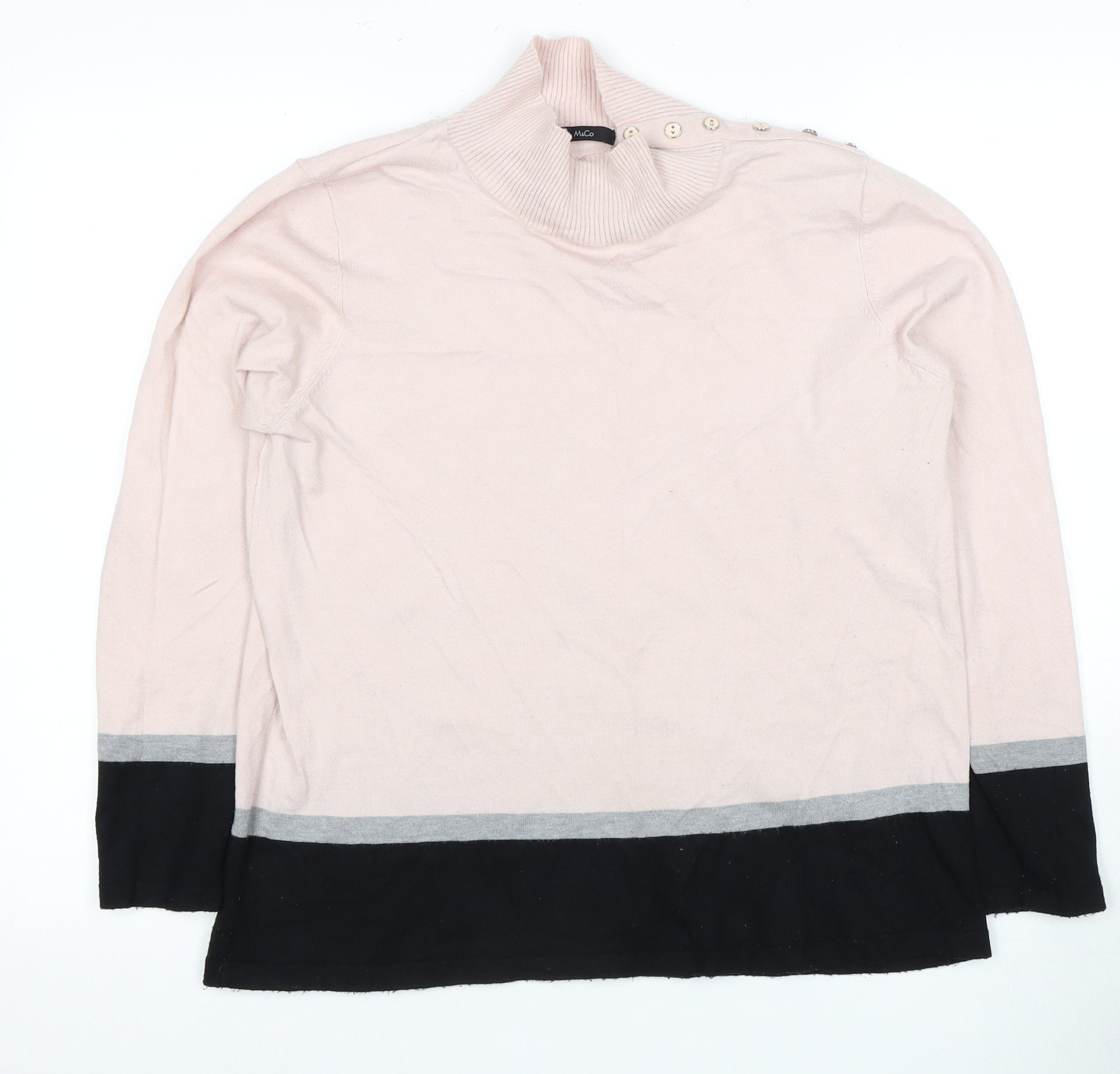 Discover comfort and style with this M&Co Women's Pink High Neck Knit Blouse, perfect for any casual setting. Fashioned in a delightful blush pink, this blouse is a charming addition to any wardrobe. The long sleeves and high neck design provide warmth and elegance, making it ideal for cooler weather. Crafted with a blend of viscose, polyester, and nylon, this blouse offers a soft and stretchy feel, ensuring all-day comfort. Featuring a classic button accent on the shoulder, this solid pattern blouse effortlessly elevates your look. Designed in a regular fit, this blouse complements any silhouette and pairs beautifully with jeans or skirts for a relaxed yet chic outfit. Machine washable for easy care, this essential piece ensures low-maintenance fashion. Whether you're out for a casual day or enjoying a cozy evening, this versatile knit blouse will adapt to your lifestyle with ease.