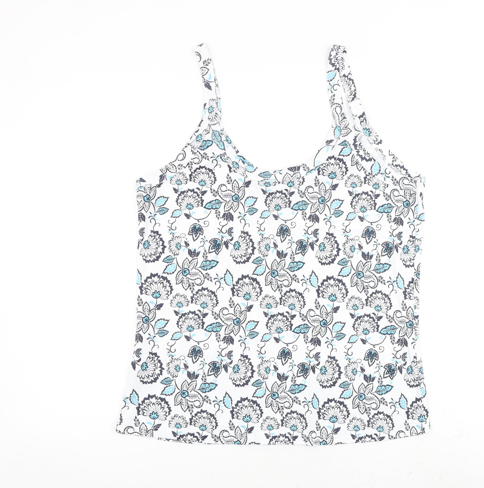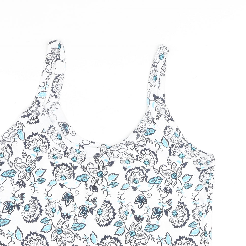 Womens White Floral 100% Cotton Basic Tank Size 20 Scoop Neck