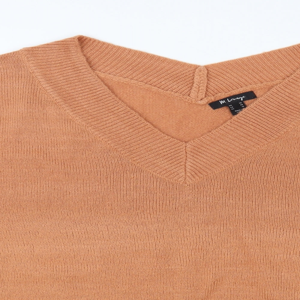 Womens Pink V-Neck Acrylic Pullover Jumper Size 20