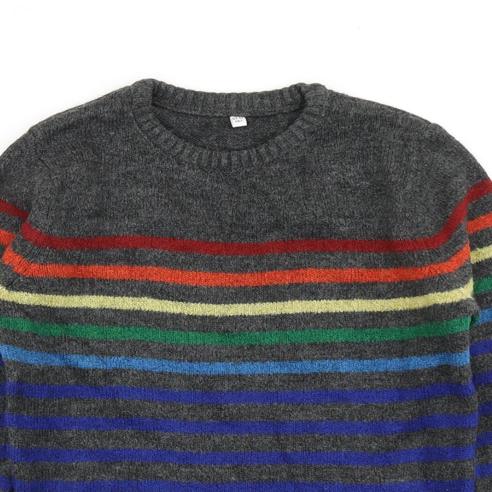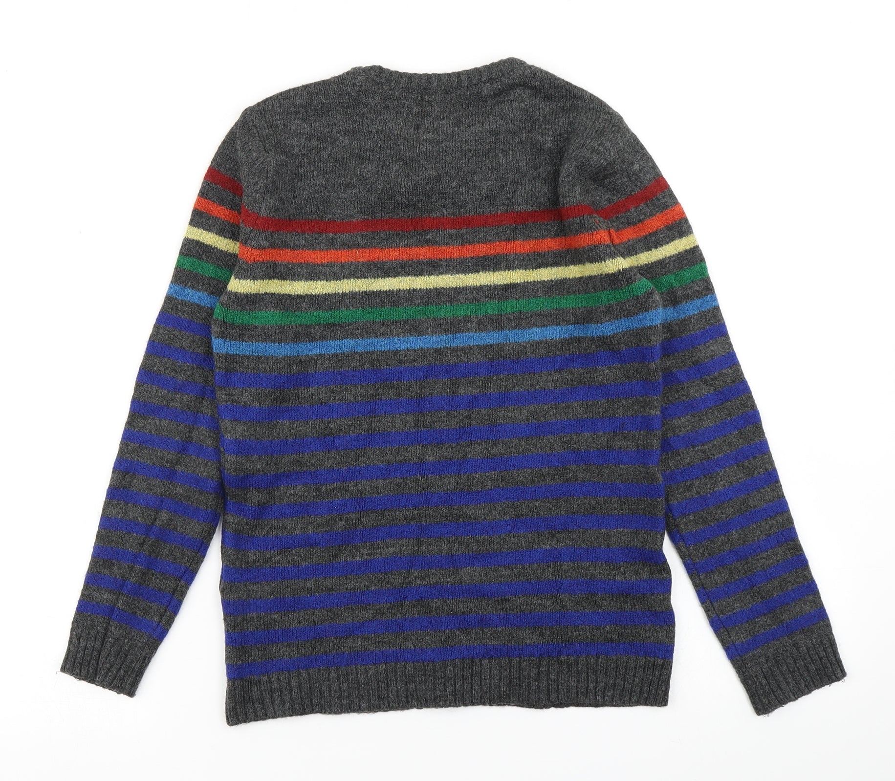 Boys Grey Striped Knit Pullover Jumper Size 10-11 Years