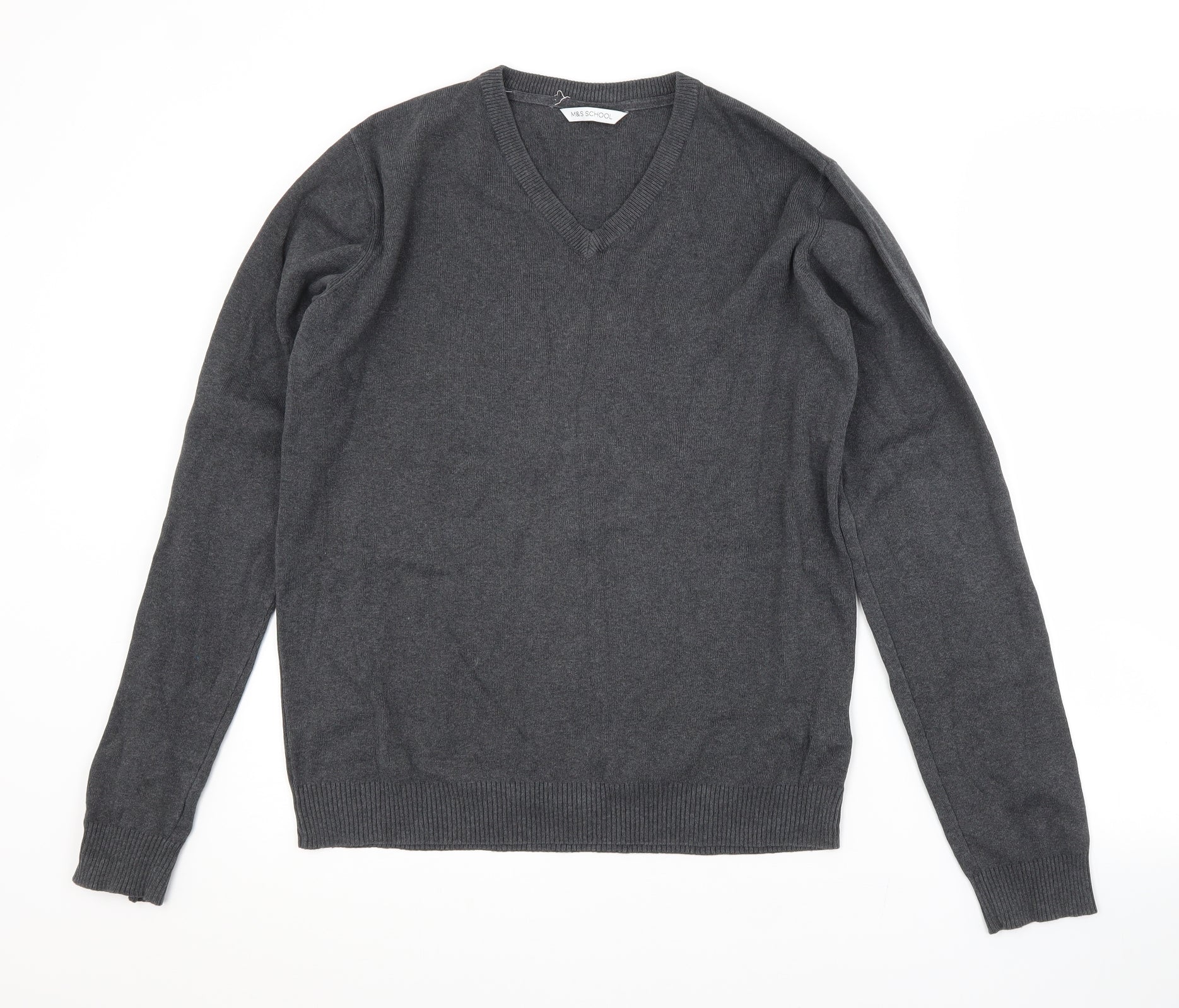 Boys Grey V-Neck Cotton Pullover Jumper Size 15-16 Years - SCHOOL JUMPER