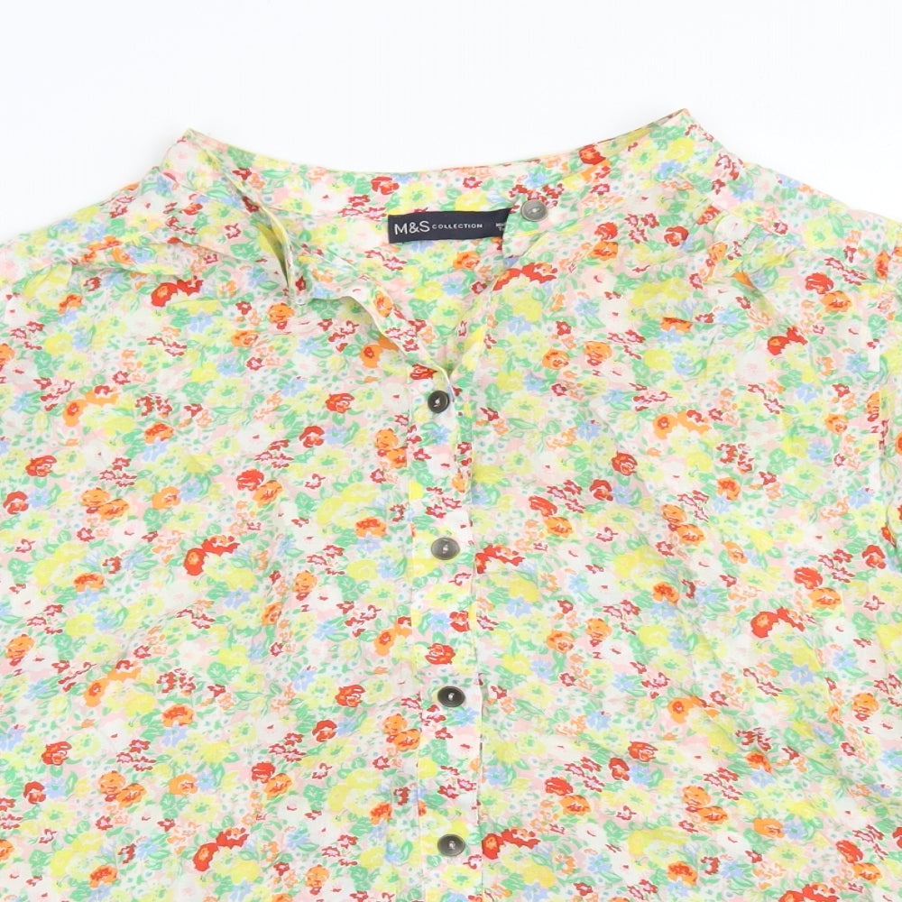 Womens Yellow Floral Viscose Basic Blouse Size 14 Round Neck - Puff Sleeve