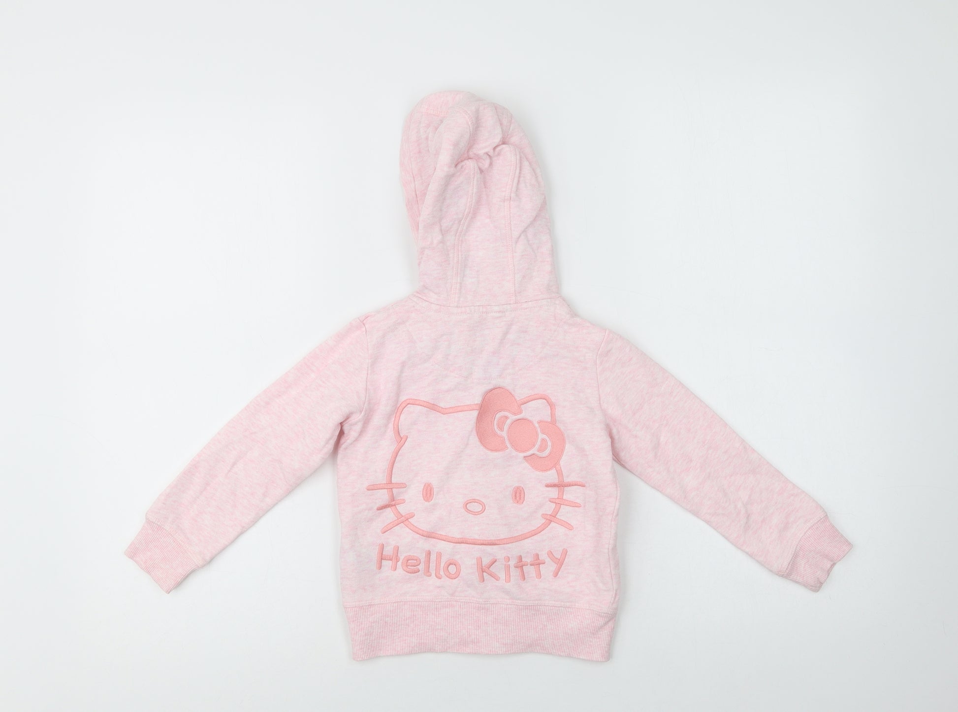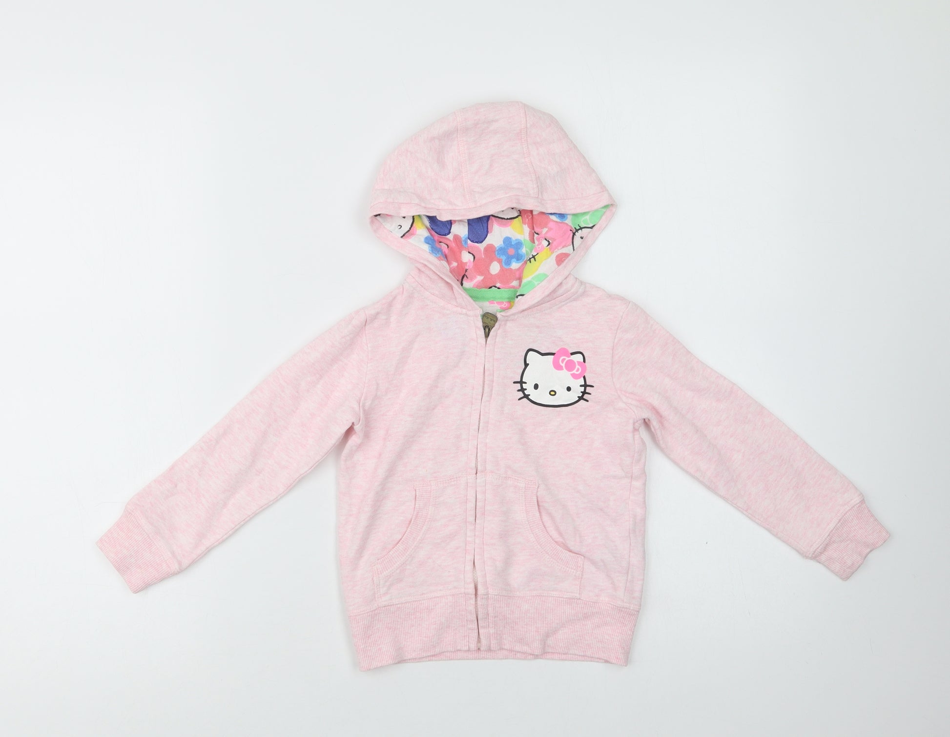 Girls Pink Cotton Full Zip Hoodie Size 3-4 Years Zip - Hello Kitty