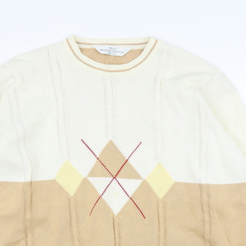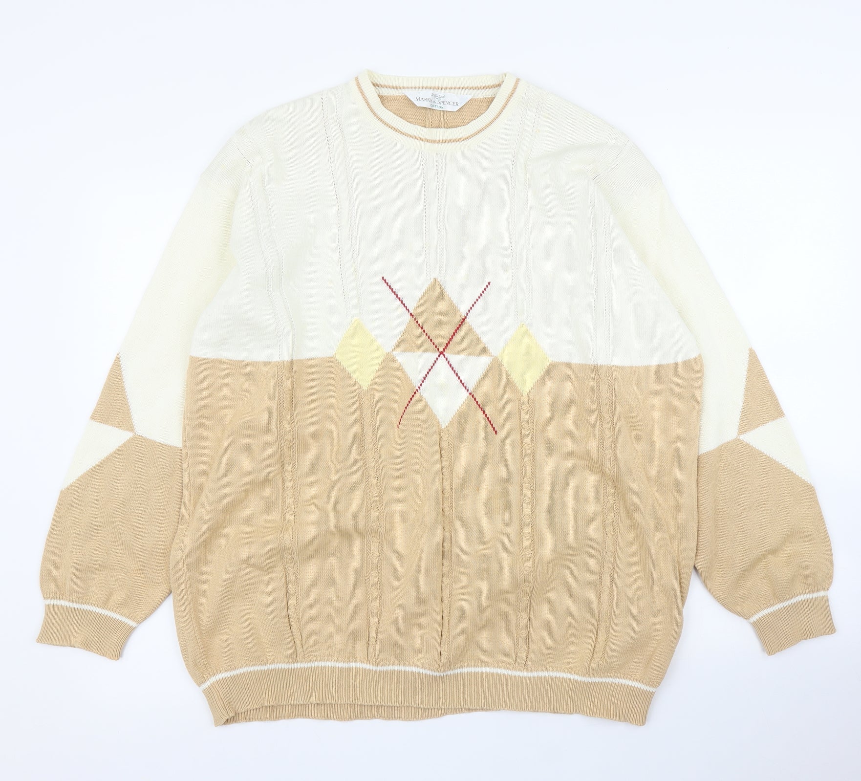 Mens Beige Argyle/Diamond Pullover Jumper Size XL