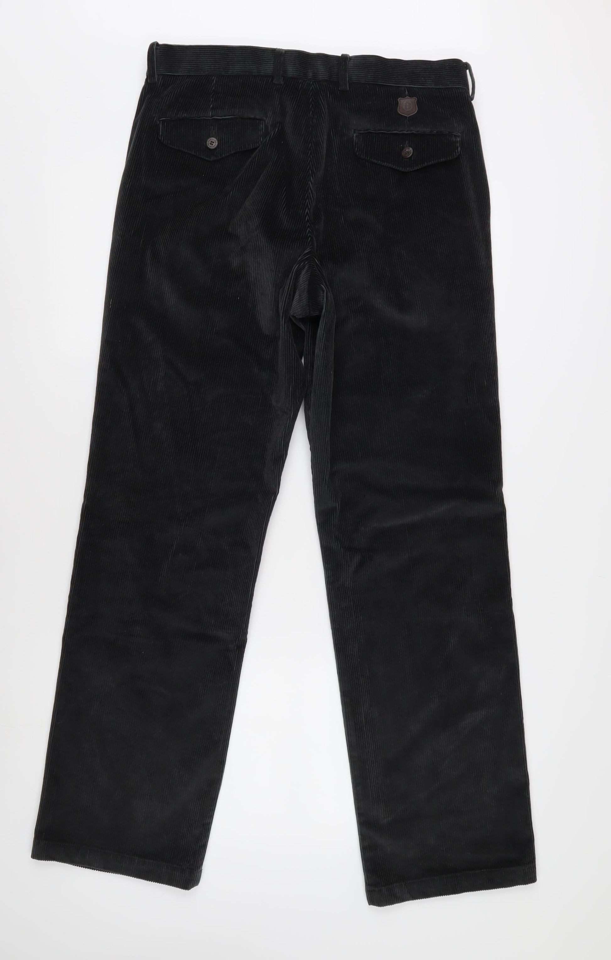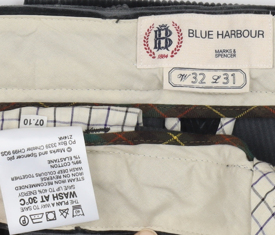 Upgrade your wardrobe with these classic corduroy trousers by Marks & Spencer, perfect for adding a touch of sophistication to any outfit. Sized at a versatile 32-inch waist with a 31-inch inside leg, these trousers offer a comfortable regular fit suitable for various occasions. The sleek black colour ensures you'll stay in style, providing a modern yet timeless look. Made primarily from cotton with a hint of elastane, these trousers deliver a soft feel coupled with slight stretch for added comfort. The button closure and slash pockets add to the convenience, making these trousers a practical choice for daily wear. Their machine washable feature ensures easy care, keeping maintenance to a minimum. Whether you're heading to the office, a casual outing, or a smart gathering, these trousers offer an effortless transition between settings. Incorporate these corduroy trousers into your collection and enjoy a fusion of style and comfort that Marks & Spencer is renowned for. Don’t miss this chance to grab a versatile wardrobe staple at a fantastic value.