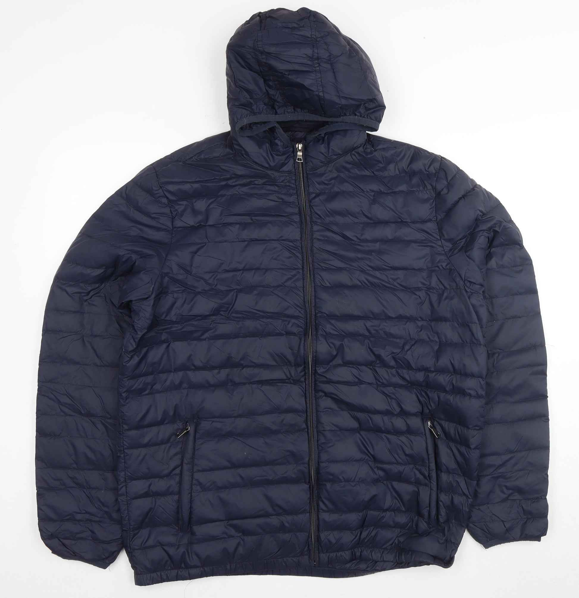 M&S Mens Blue Puffer Jacket L Hooded Lightweight