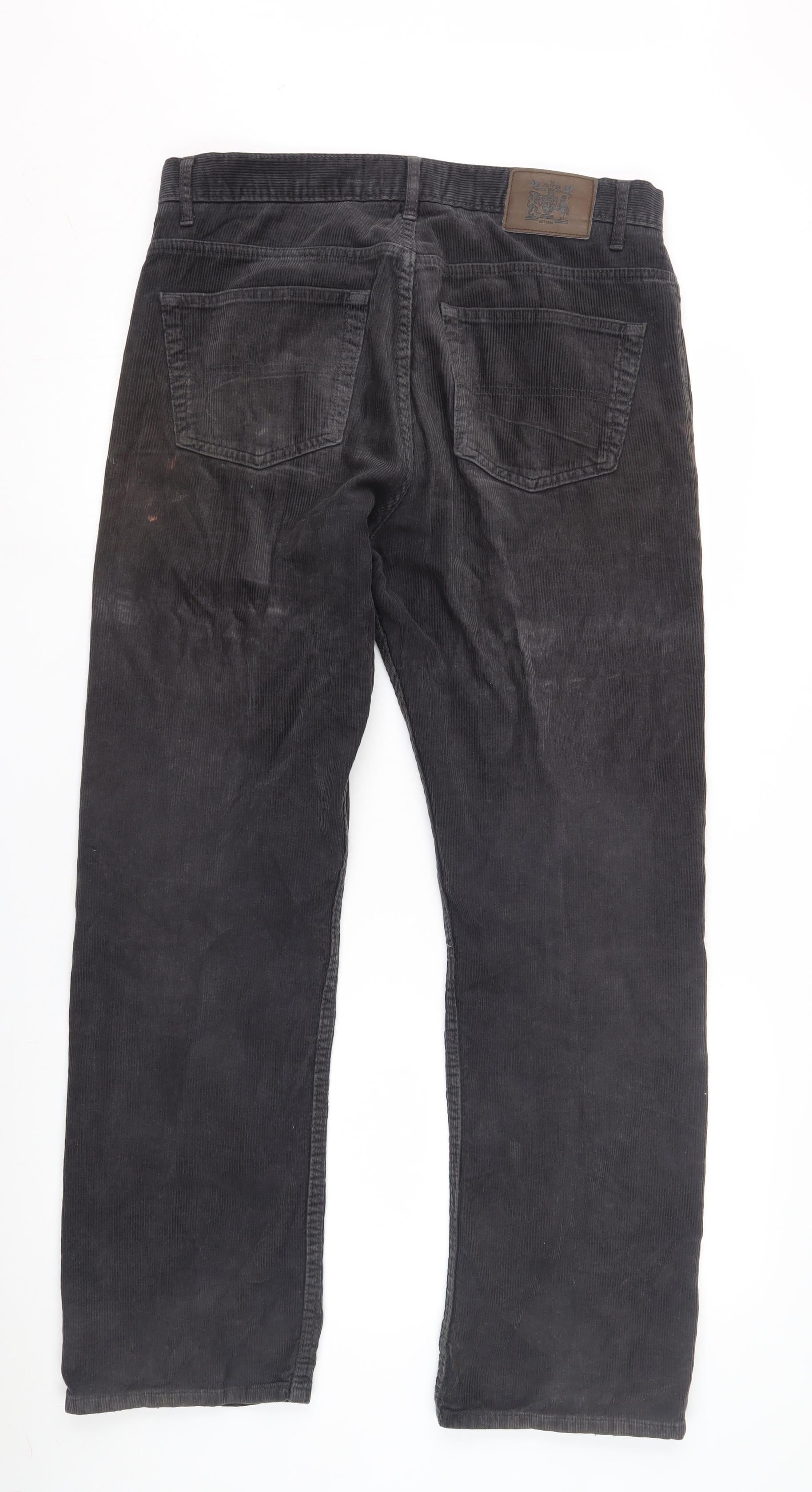 These Marks and Spencer men's trousers, made from a comfortable blend of 98% cotton and 2% elastane, are perfect for a relaxed, casual look. Presented in an appealing grey, these corduroy trousers are designed in a classic straight leg style, providing a timeless addition to any wardrobe. With a regular fit, they offer comfort and style suitable for everyday wear. The trousers feature a mid-rise design, ensuring they sit comfortably on the waist. Ideal for cooler seasons such as autumn, spring, and winter, these trousers are versatile and machine washable for easy care.