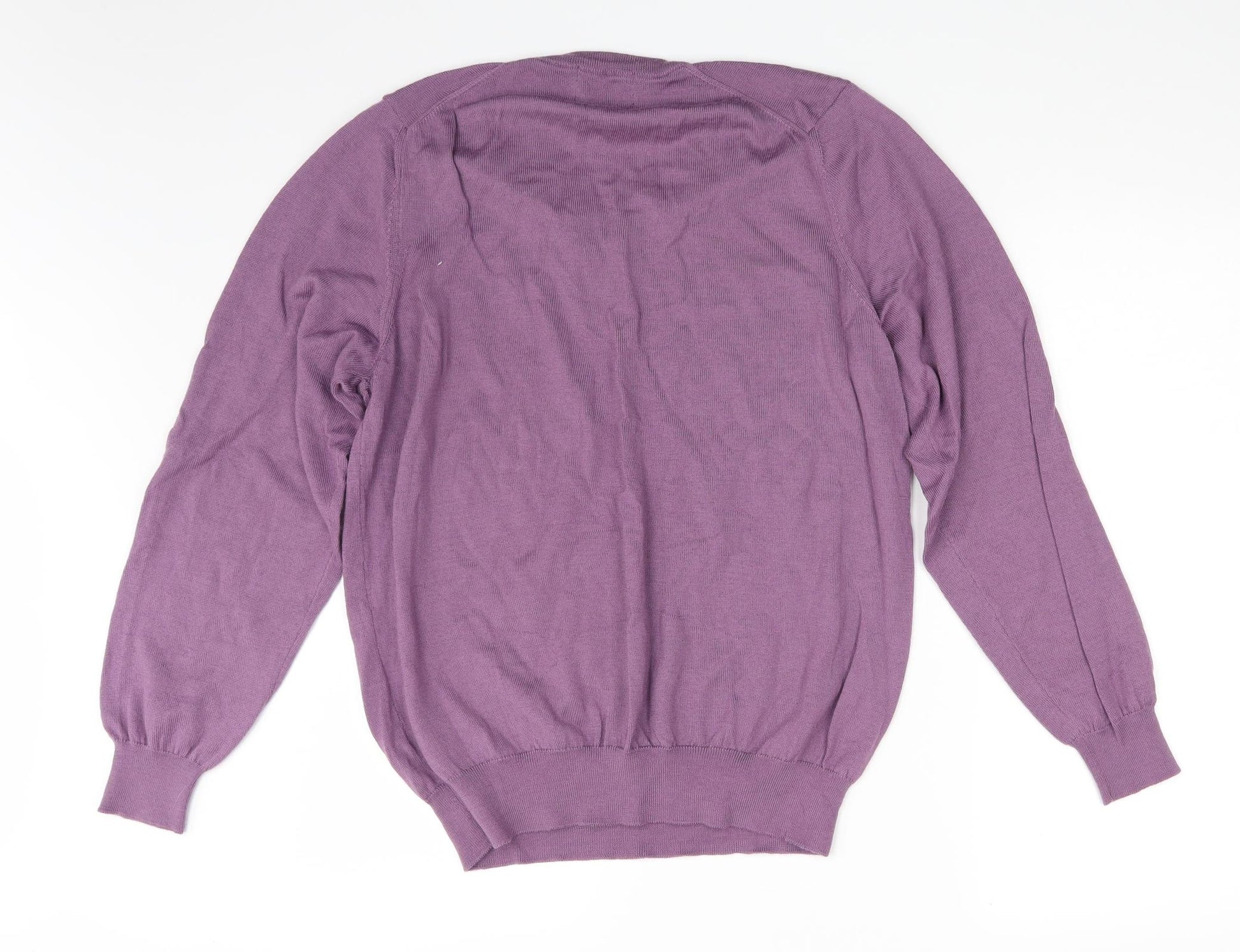 Tommy Hilfiger Men's Purple V-Neck Cotton Blend Jumper M