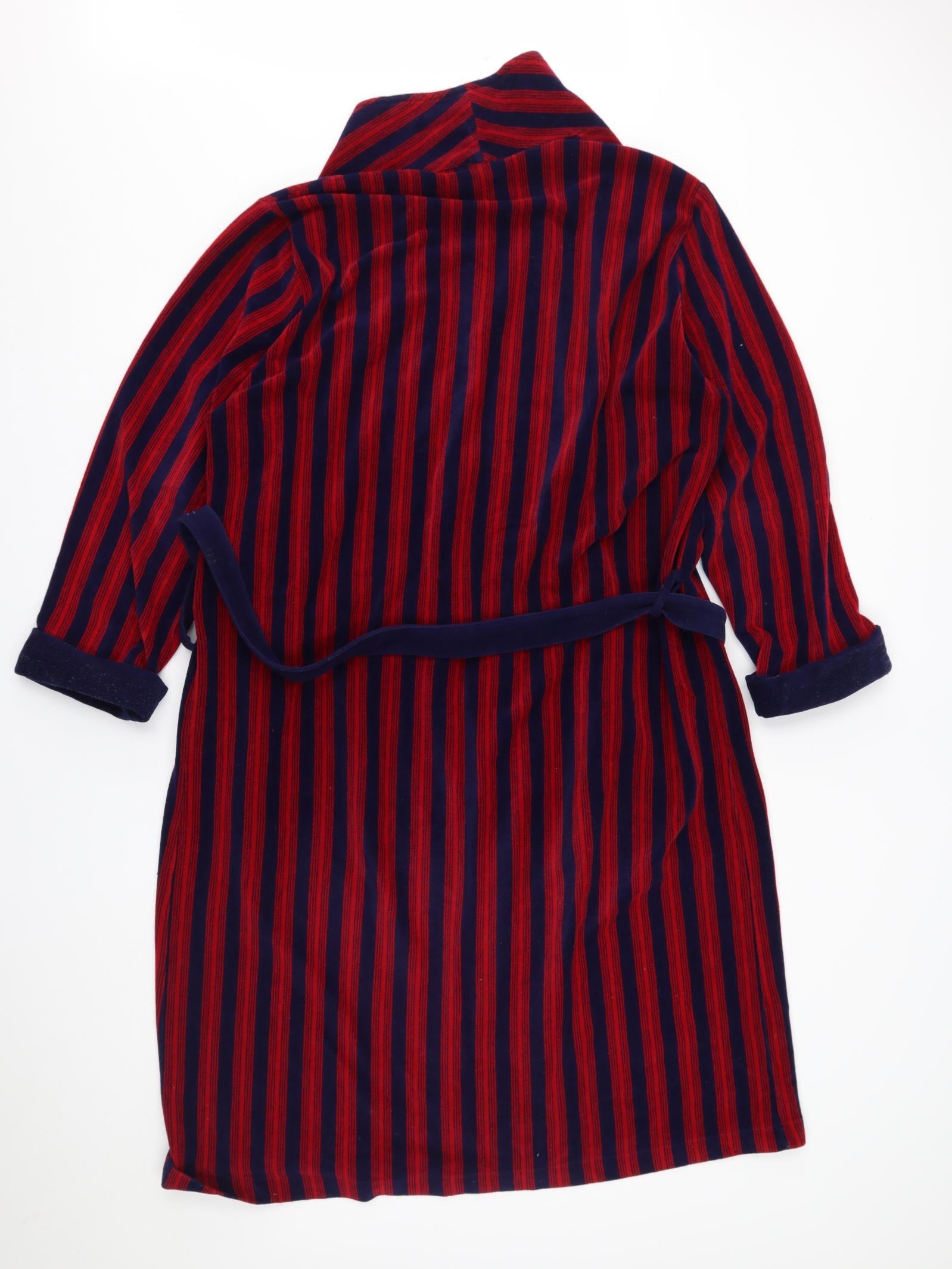 DKNY Men's Grey Black Red Fleece Robe L Belted Lightweight Striped