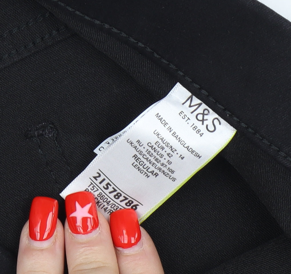 Explore comfort and style with these Marks and Spencer Women’s Black Jegging Jeans in a size 14, perfect for those cooler autumn and winter months. Crafted from a breathable denim blend of 69% Cotton, 28% Polyester, and 3% Elastane, these jeggings are designed to offer a regular fit, ensuring you'll enjoy both ease and flexibility all day long. The elastic waistband provides a secure yet comfortable fit, making these jeggings an ideal wardrobe essential for the modern woman who seeks practicality without compromising on style. These sleek, dark-wash jeans boast a 5-pocket design, combining the classic appeal of jeans with the snug feel of leggings. Effortlessly versatile, they can be dressed up for a night out with a chic blouse and heels or kept casual with a cosy sweater and sneakers. The pair's machine washability ensures easy care, allowing you to maintain their pristine condition with minimal effort. Boasting a timeless black hue, these jeggings offer unmatched versatility, serving as the perfect canvas for your unique style. Whether paired with bold patterns, striking textures, or relaxed basics, they bring a subtle sophistication to any ensemble. Treat yourself to the ultimate blend of fashion and function with these Marks and Spencer Black Jegging Jeans, and enjoy a fashionable edge to your regular rotations.