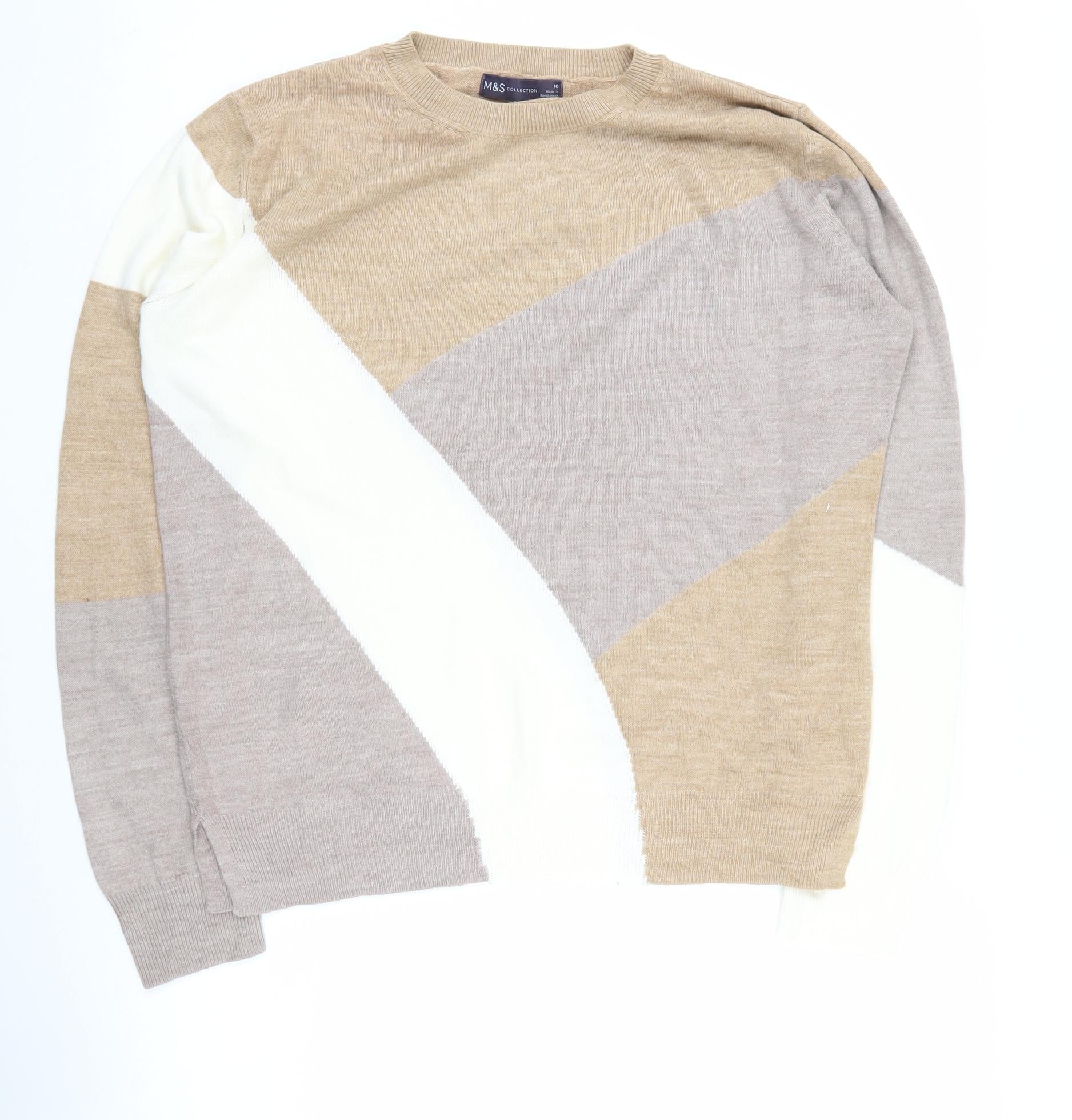 M&S Women's Beige Geometric Pullover Jumper Size 10