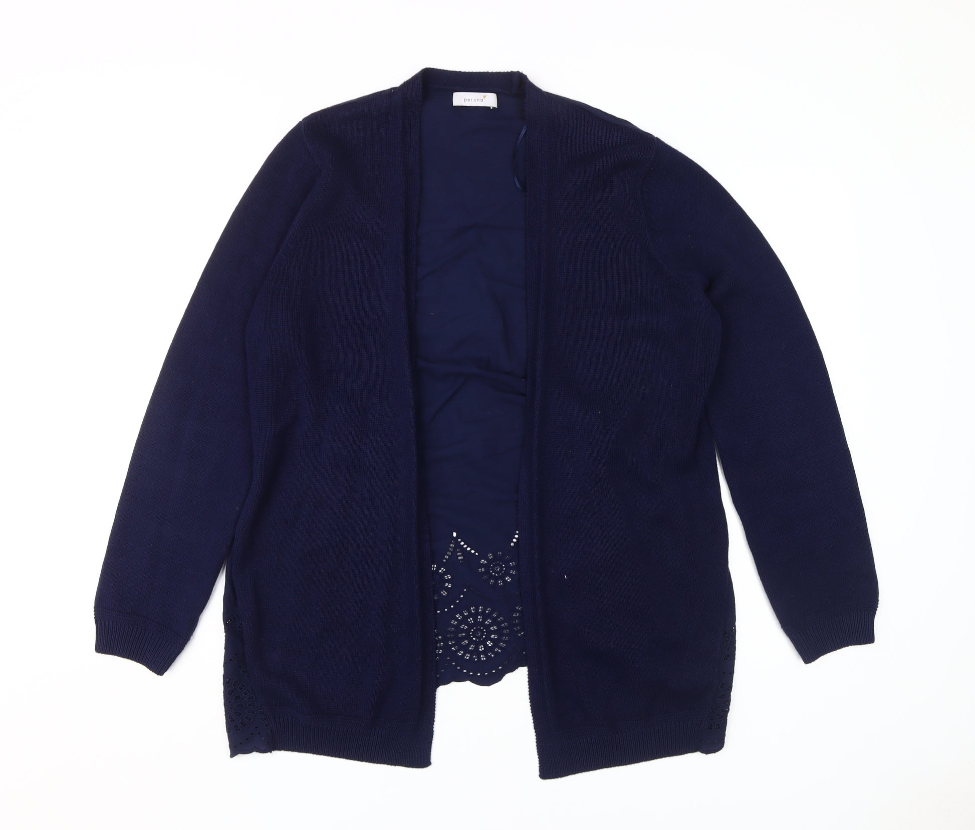 M&S Women's Blue Cardigan Size 14 Cotton Crochet Accent