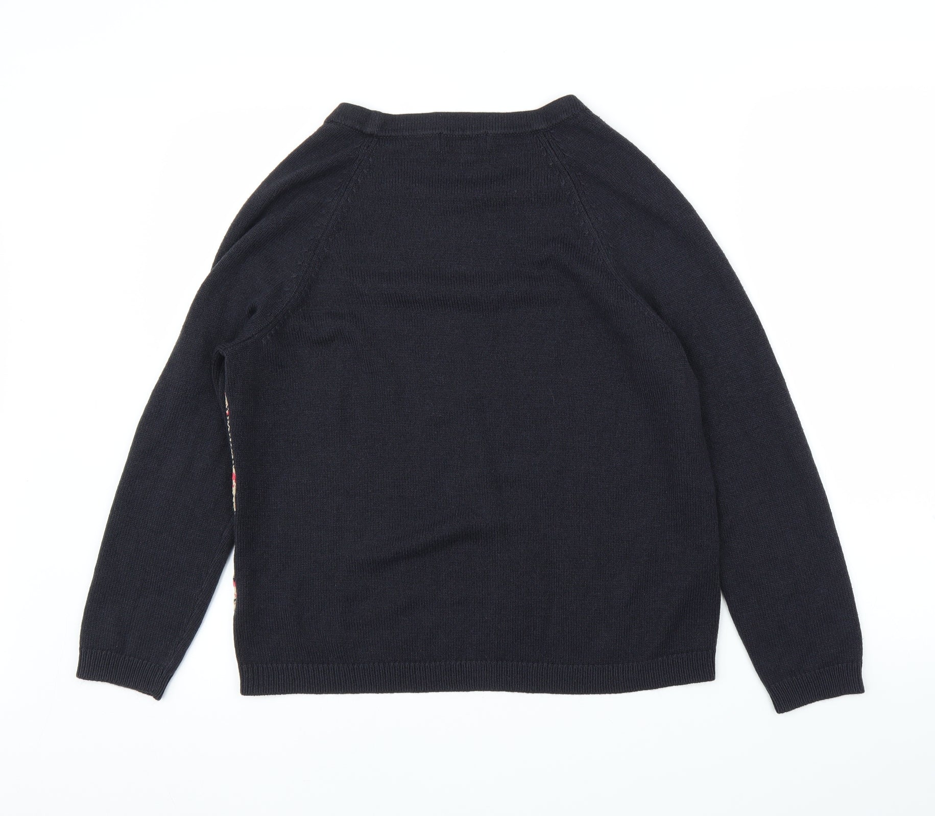 Joules Women's Blue Embroidered Dragonfly Mock Neck Jumper Size 16