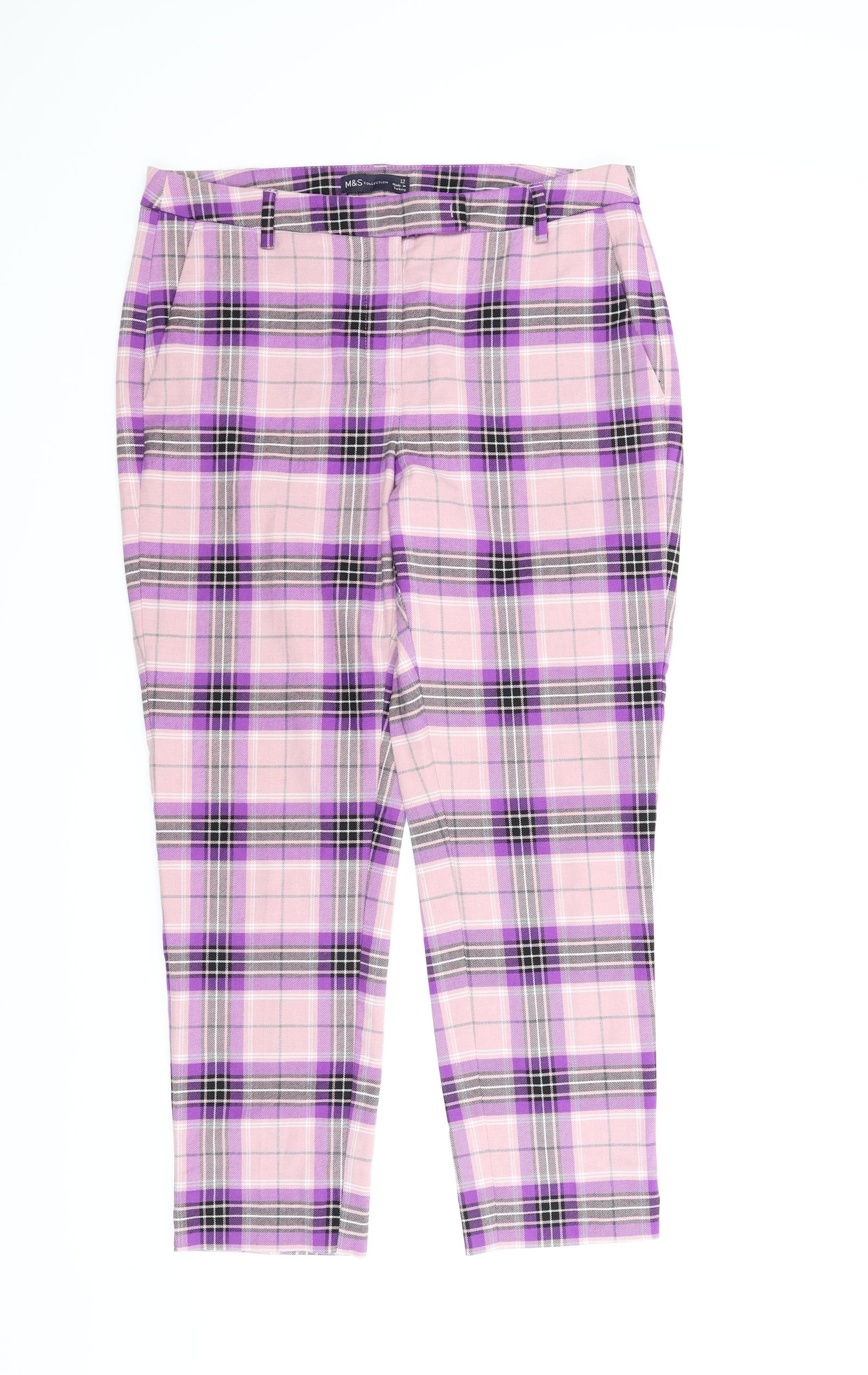 Womens Purple Plaid Pedal Pusher Trousers Size 12 L24 in