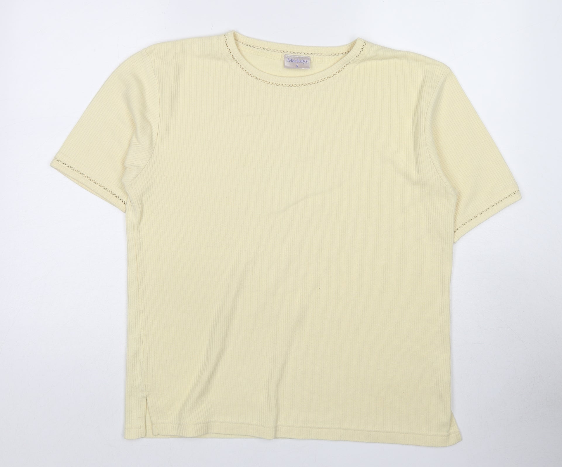 Womens Yellow Cotton Basic T-Shirt Size S Crew Neck