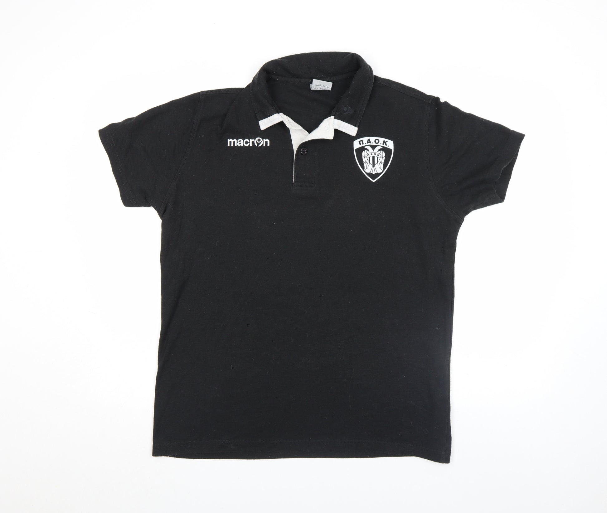Mens Black PAOK Sports Polo Shirt L Football Cotton Blend