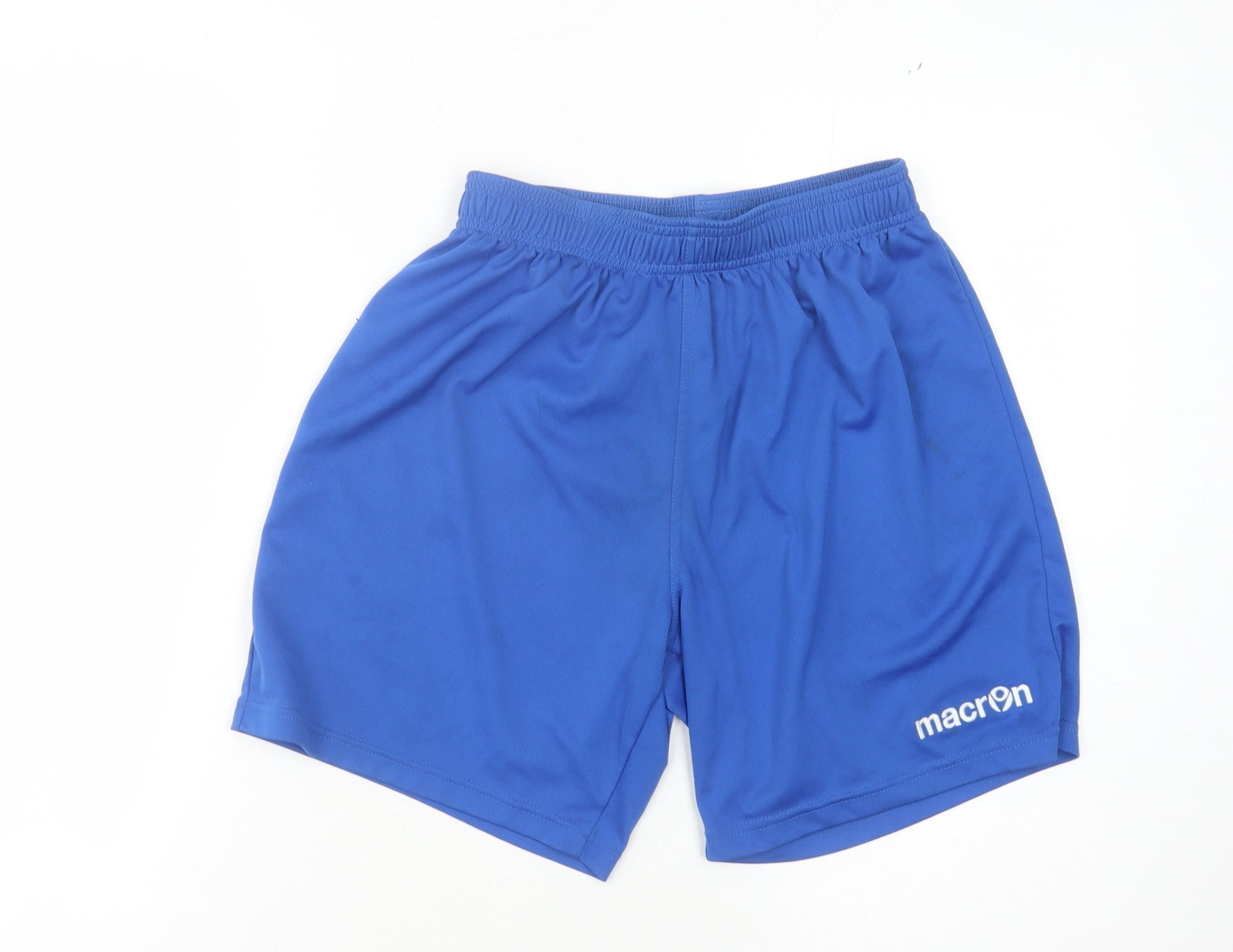 Experience the perfect blend of comfort and style with these Macron Men's Blue Athletic Shorts in size S. Crafted for activewear, these shorts are ideal for summer workouts or casual wear. Made from high-quality jersey fabric, the shorts promise durability and ease of movement. The electric blue colour adds a vibrant touch to your athletic ensemble, while the elastic waistband ensures a snug and comfortable fit during all kinds of activities.Designed for a variety of athletic activities, these shorts feature a moisture-wicking polyester material that helps keep you dry and comfortable. The absence of any pattern gives it a sleek, modern look, while the lightweight fabric allows for unrestrained movement. Whether you're hitting the gym or just heading out for a casual run, these shorts make an excellent addition to your wardrobe.These shorts are in good condition, with slight stains on the fabric that are hardly noticeable, making them perfect for day-to-day use where functionality comes first. They are machine washable, adding to your convenience by ensuring easy care and maintenance.Choose these versatile Macron shorts for their athletic fit and functional design. They are your go-to choice for every active occasion, whether it's a routine workout, a casual stroll, or even a relaxing day at home. Add them to your athletic gear and step out in confidence and comfort.