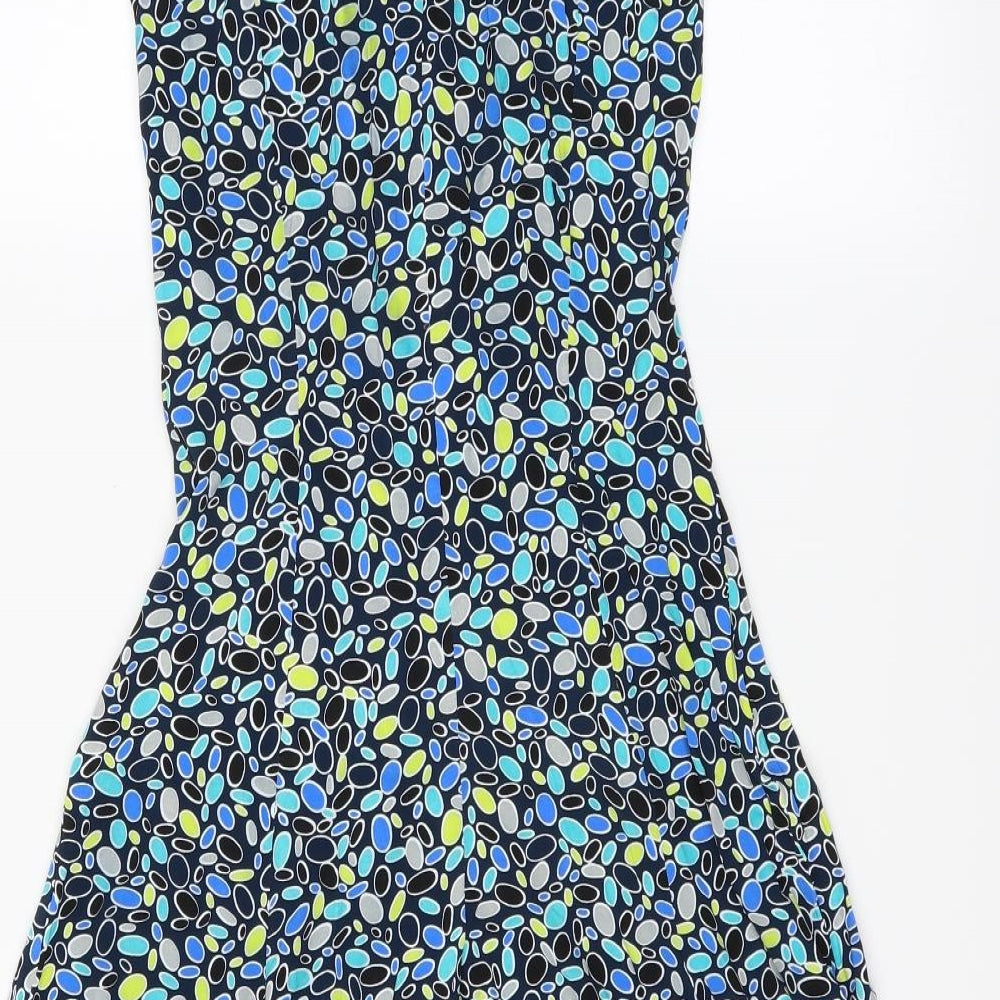 Marks and Spencer Womens Blue Animal Print Viscose A-Line Size 6 Round Neck Zip - Angel Sleeve Hanky Hem Leopard Print