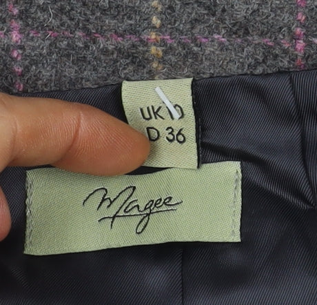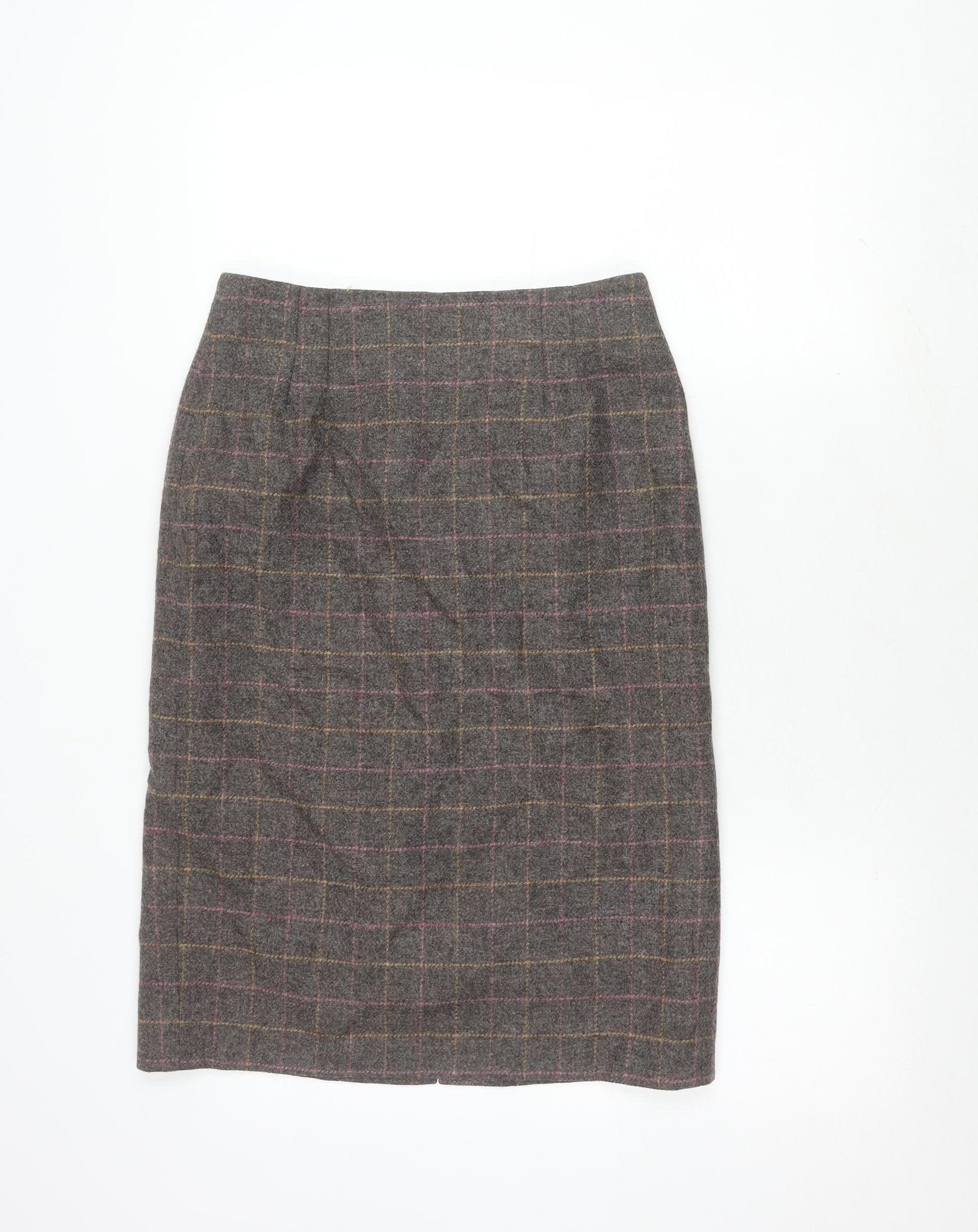 This timeless Magee pencil skirt, designed for women, is the perfect addition to any wardrobe. Crafted for sophistication and style, the skirt features a classic grey check pattern, ideal for both formal occasions and professional settings. Made in a comfortable knee-length cut, it offers a refined and polished look. The skirt is constructed with the finest materials, ensuring comfort and durability for all-day wear. Whether paired with a blouse or a smart jacket, this versatile piece is sure to impress. The straight and pencil style creates a flattering silhouette, perfect for enhancing any ensemble. With its excellent condition, this skirt promises to deliver enduring quality and timeless elegance. Don't miss out on this chic, must-have piece from the renowned Magee brand.