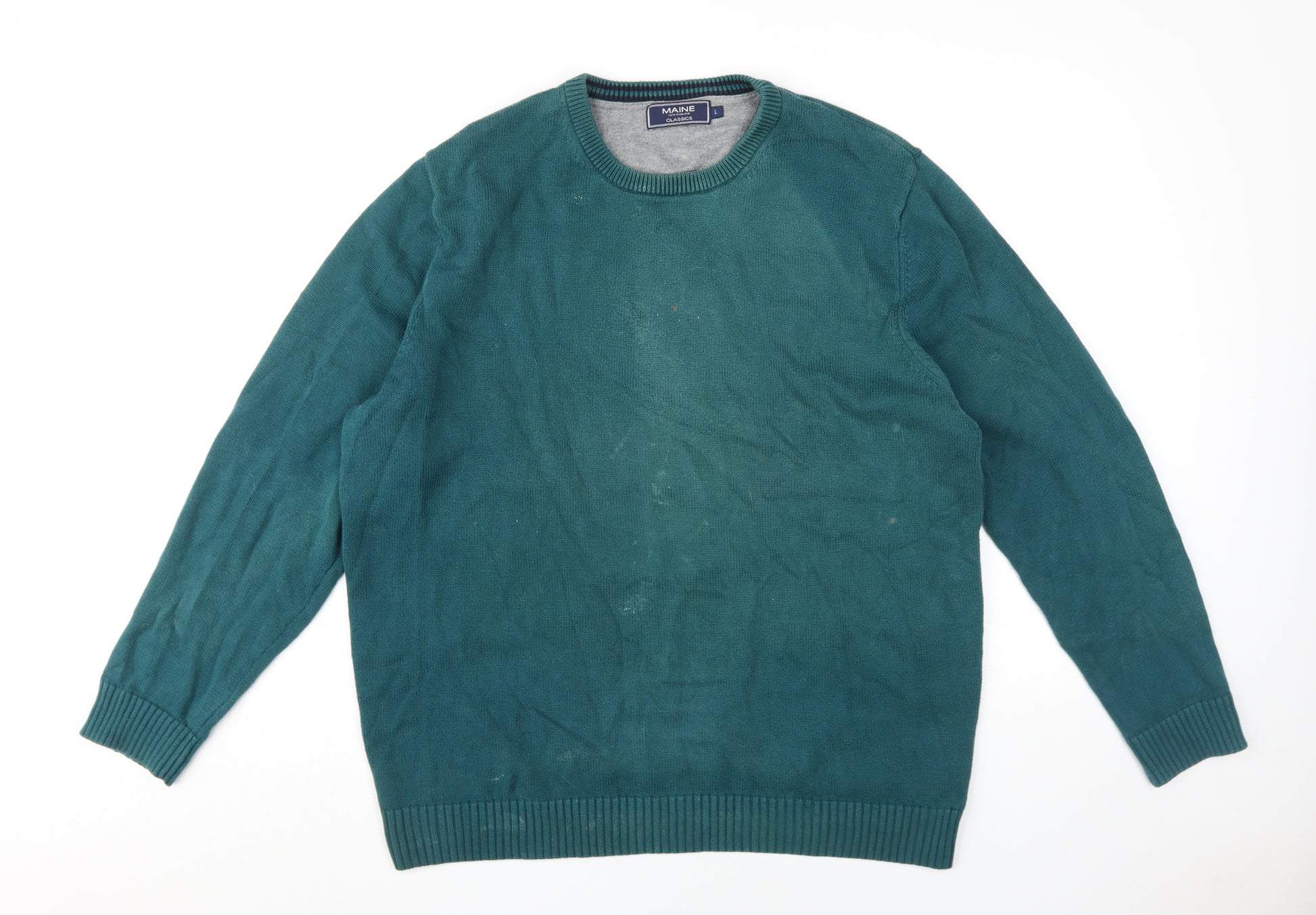 Add a touch of classic style to your wardrobe with this Maine New England pullover jumper. Crafted from 100% cotton, this green jumper offers a soft, snug fit perfect for the cooler months of autumn and winter. Its regular fit and crew neckline provide a timeless silhouette that's as comfortable as it is versatile. Whether you're dressing for a casual day out or a laid-back evening gathering, this jumper is sure to complement your look.Designed with longevity and effortless style in mind, this jumper is suitable for a variety of casual occasions, making it a great addition to any man's wardrobe. The tight-knit construction adds an element of durability while ensuring a refined look. Despite having slight wear and no original tags, it remains in very good condition, ready to provide style and comfort.With no intricate patterns, the solid green colour allows for easy pairing with your favourite jeans or chinos, offering a seamless ensemble. Embrace the classic theme and warm layering this piece offers, ideal for transitioning seasons. Machine washable and easy to maintain, this jumper is not just an excellent choice for practicality but also an affordable one, priced attractively to ensure you get great value.Whether you're a fan of Maine New England's timeless clothing or simply someone in search of an everyday staple, this pullover will exceed expectations, promising warmth, comfort, and style year-round. Seize the opportunity to own this essential piece that perfectly blends classic design with reliable comfort.
