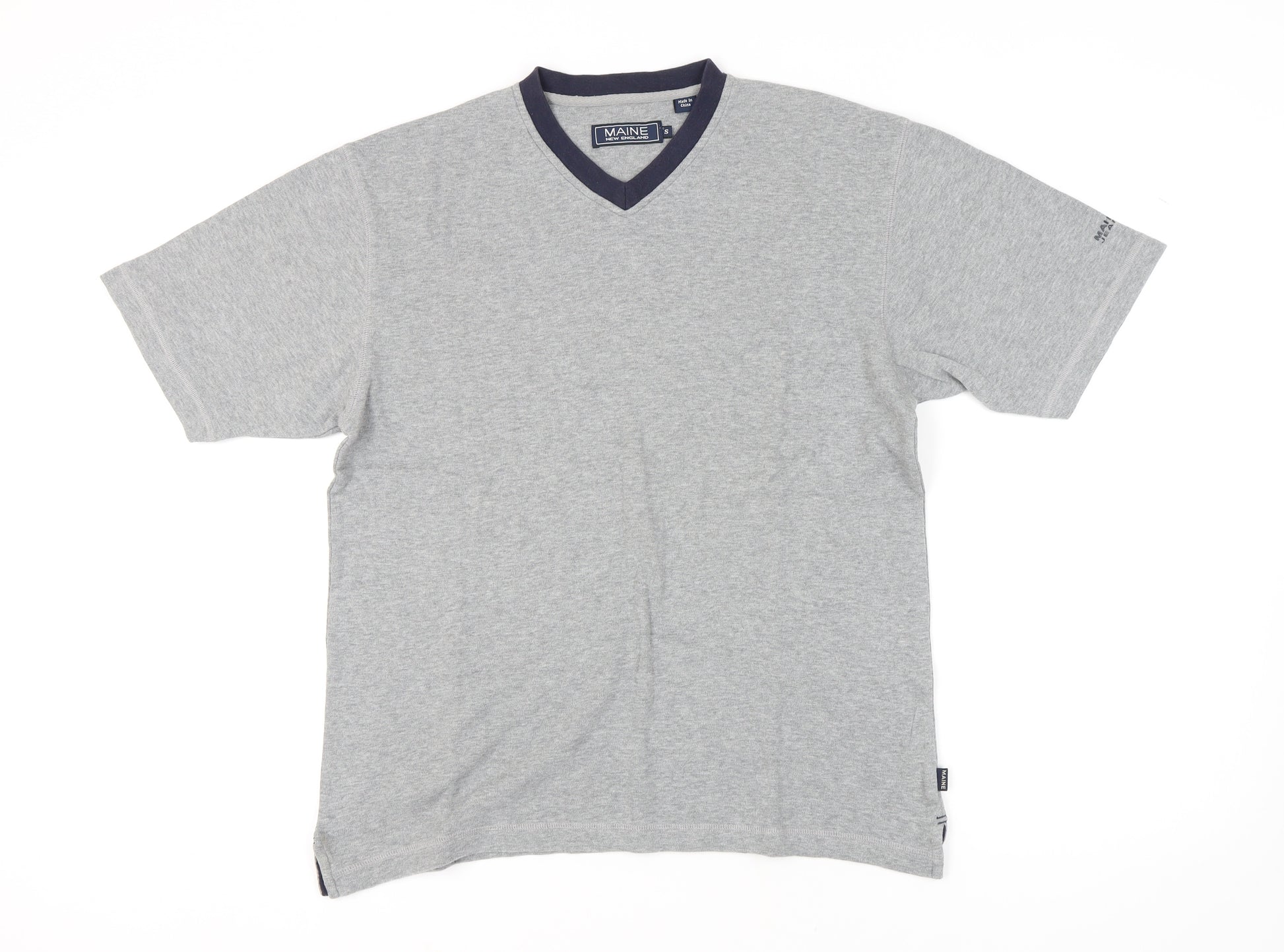 Discover casual comfort with the Maine New England Men's T-Shirt, crafted in a versatile grey shade. This classic V-neck shirt offers a relaxed fit, perfect for everyday wear. Made from quality fabric, it's machine washable for easy care. Ideal for all-day comfort with short sleeves, this solid pattern tee adds a staple piece to any wardrobe. Experience effortless style with the simplicity of a solid grey design, providing the flexibility to wear solo or layered. The small size fits regular body types, ensuring a comfortable fit for men looking to enhance their casual collection. Whether heading to a casual outing or lounging at home, this T-shirt delivers essential style. Embrace the ease and simplicity of this must-have garment that complements any casual ensemble.