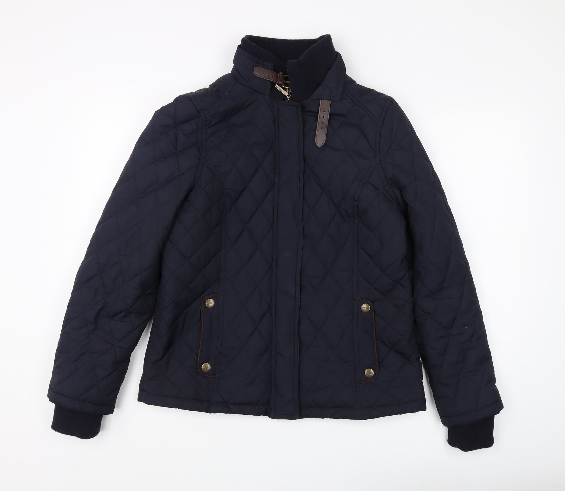 Explore comfort and style with this Maine New England women's quilted jacket in a sophisticated blue hue, perfect for autumn and winter seasons. The mid-length jacket features a smart collared neckline and practical zipped pockets, making it an ideal choice for casual outings. Crafted from durable polyester, it ensures warmth and a flattering fit with long sleeves. The jacket's quilted fabric type offers a classic look enhanced by button accents for added elegance. Its excellent condition and machine washable design guarantee easy maintenance. Elevate your wardrobe with this timeless piece designed to provide both functionality and style in cooler months.