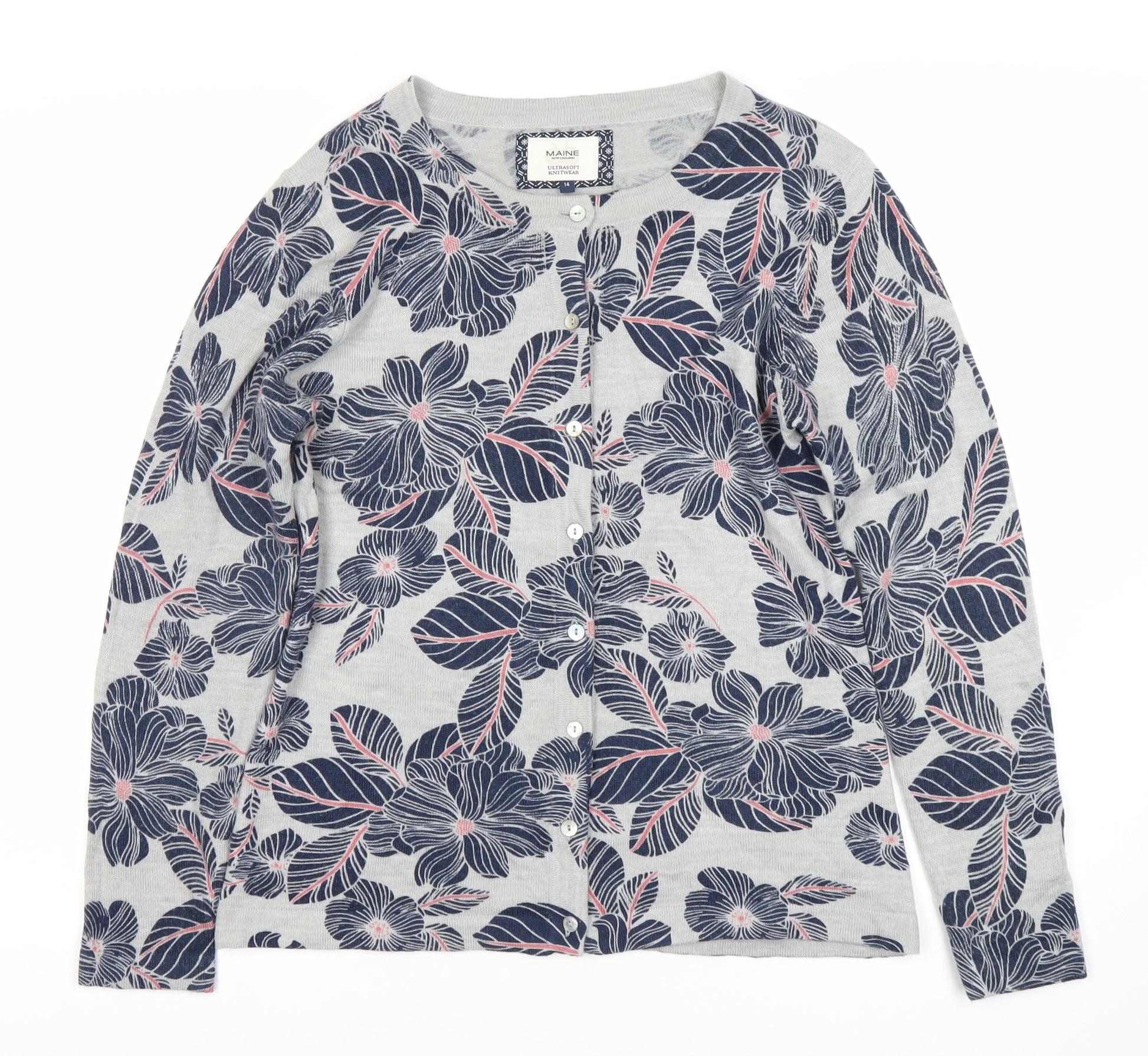 Elevate your spring and summer wardrobe with this captivating Maine New England women's cardigan. In a delightful shade of grey, this lightweight knit garment is adorned with an elegant floral pattern, perfect for casual outings and light party occasions. Crafted from 100% cotton, it offers the ultimate comfort and breathability, ensuring you stay cool on warmer days. The cardigan features a classic crew neckline and a buttoned front for easy wear, while the regular fit is flattering and comfortable for all-day wear. Designed for the modern woman, this versatile top is ideal for layering over your favourite tops or dresses. Effortlessly pair it with jeans or skirts to create chic, everyday looks. Its machine washable fabric makes this cardigan not only stylish but highly practical as well. Whether you're planning a casual lunch or a day of shopping, this floral cardigan is sure to become a staple in your wardrobe. Don't miss out on the chance to add this stunning piece to your collection. Purchase today and experience the perfect combination of style and comfort.