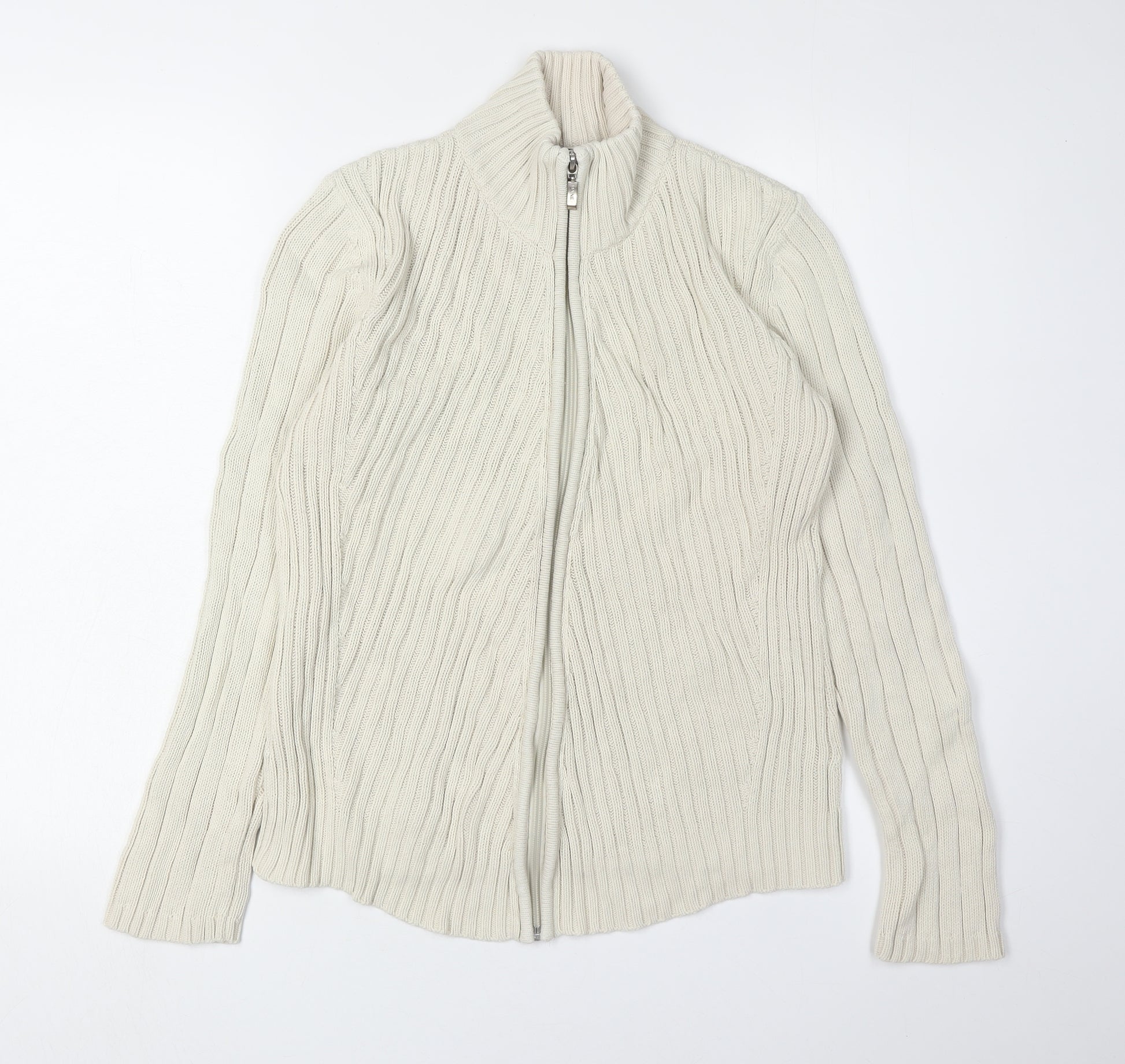 FatFace Women’s Ivory Cable-Knit Full Zip Hooded Jumper Size 12