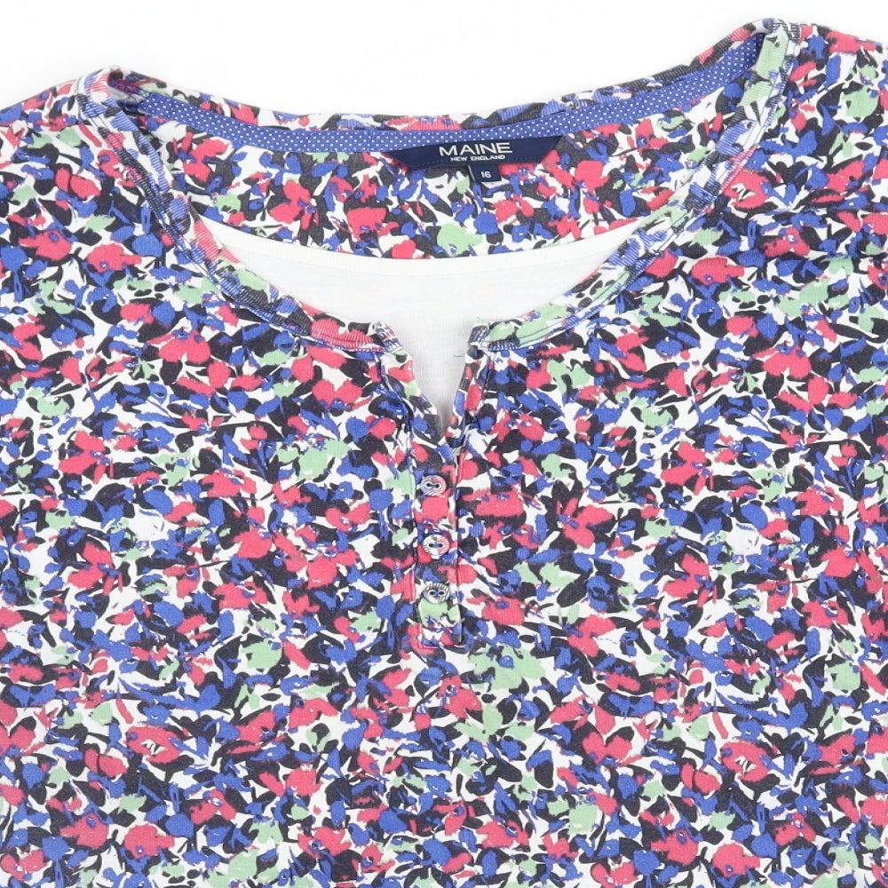 Womens Multicoloured Floral Jersey Basic T-Shirt Size 16