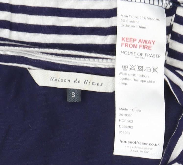 Discover effortless style with this Maison de Nimes dress in a classic blue striped design. Perfect for the spring and summer months, this women's dress combines casual elegance with comfort. Crafted from a blend of viscose and elastane, it offers a lightweight and breathable fit that's ideal for warm weather. The scoop neckline and sleeveless design lend a relaxed, sophisticated look, making it versatile for both daytime outings and relaxed evenings. The dress features a lined interior, ensuring a smooth silhouette and adding an extra layer of quality. Enjoy the subtle sophistication of a striped pattern that elongates and flatters the figure. Machine washable for convenience, this dress stands out as a practical choice for everyday wear. Whether you're heading to the beach, a casual lunch, or a summer party, this dress offers a perfect blend of style and versatility. Embrace the simple yet chic vibe of Maison de Nimes and make this a staple piece in your seasonal wardrobe.