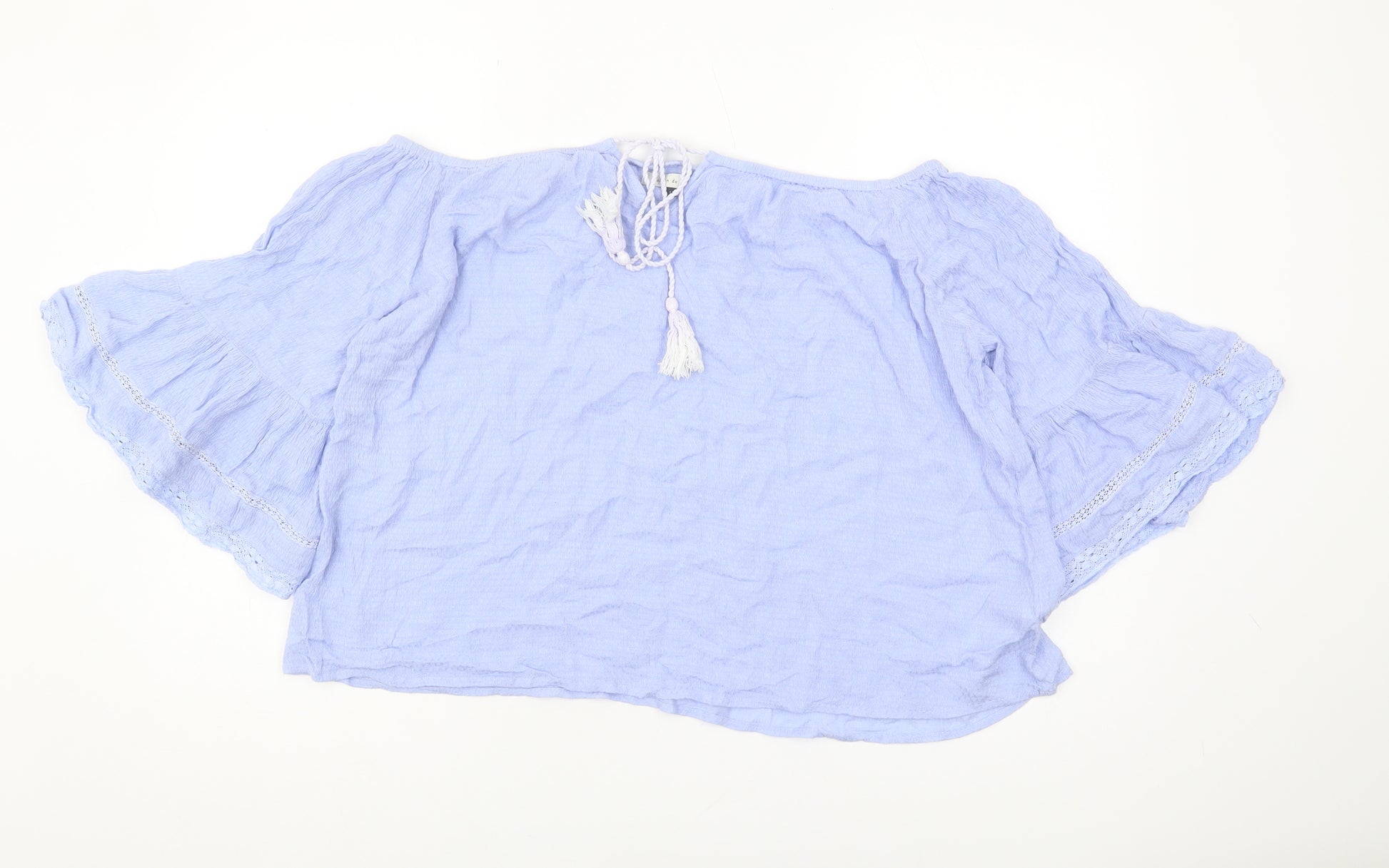 Freespirit Womens Blue Short Sleeve Lace Trim Camisole Blouse Size 12