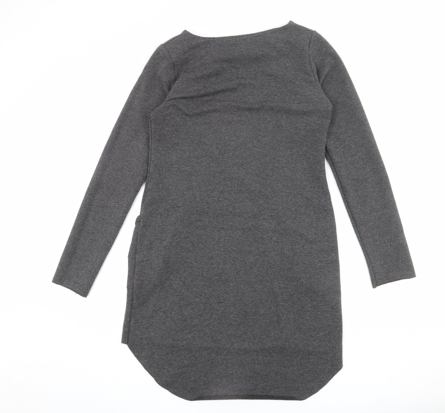 Womens Grey Polyester Jumper Dress Size 10 Round Neck Pullover