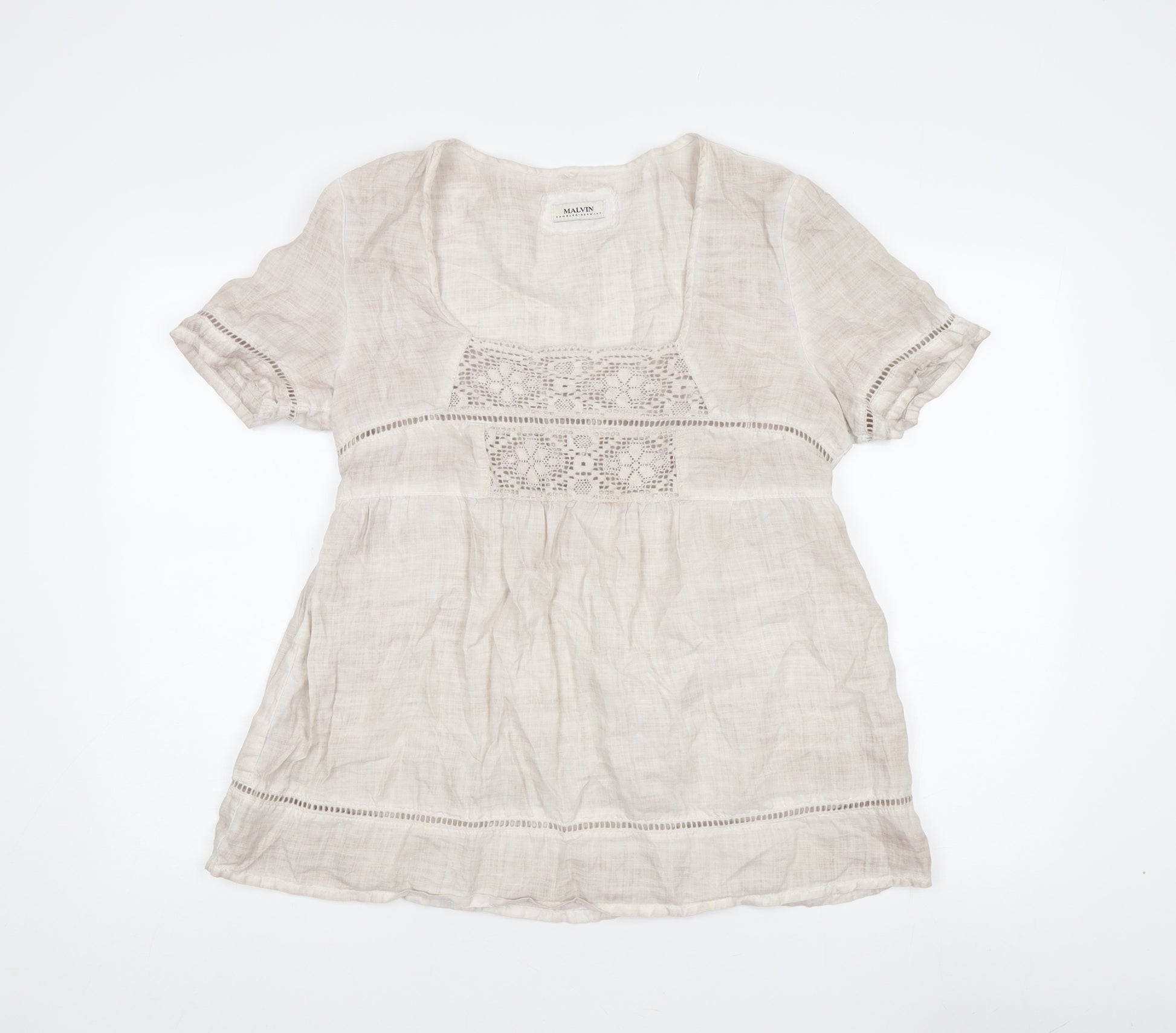 Elevate your everyday wardrobe with this chic Malvin Women's Blouse. Expertly crafted from 100% cotton, this blouse promises comfort and style in a lightweight design perfect for spring and summer wear. The elegant beige hue is complemented by delicate crochet accents that elevate its overall look, making it ideal for casual outings or relaxed gatherings. The short sleeves and square neckline add a touch of sophistication, ensuring you stay stylish throughout the season. Designed for regular fit, this solid-patterned blouse ensures ease of movement and breathability. Machine washable for easy care, it's a practical yet chic addition to any woman's wardrobe. Add a touch of timeless elegance to your collection with this versatile Malvin women's blouse, and enjoy the perfect blend of comfort and style.