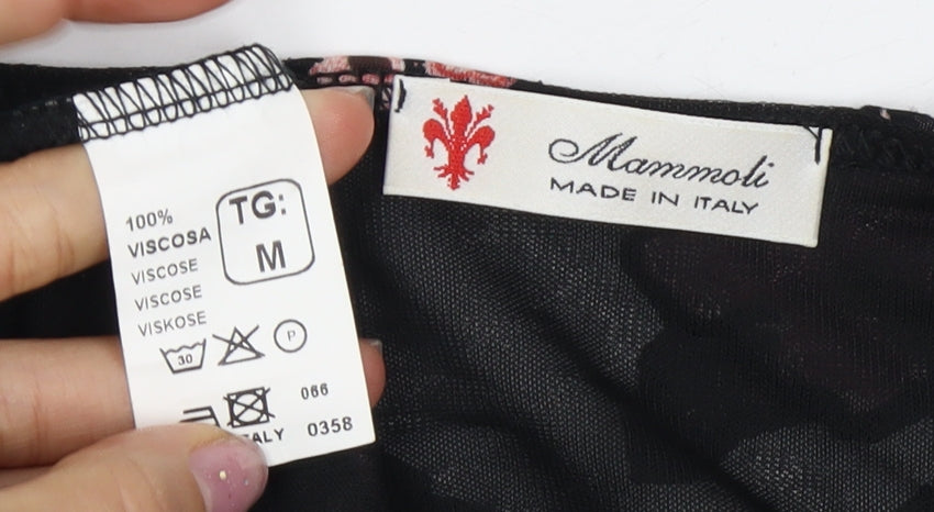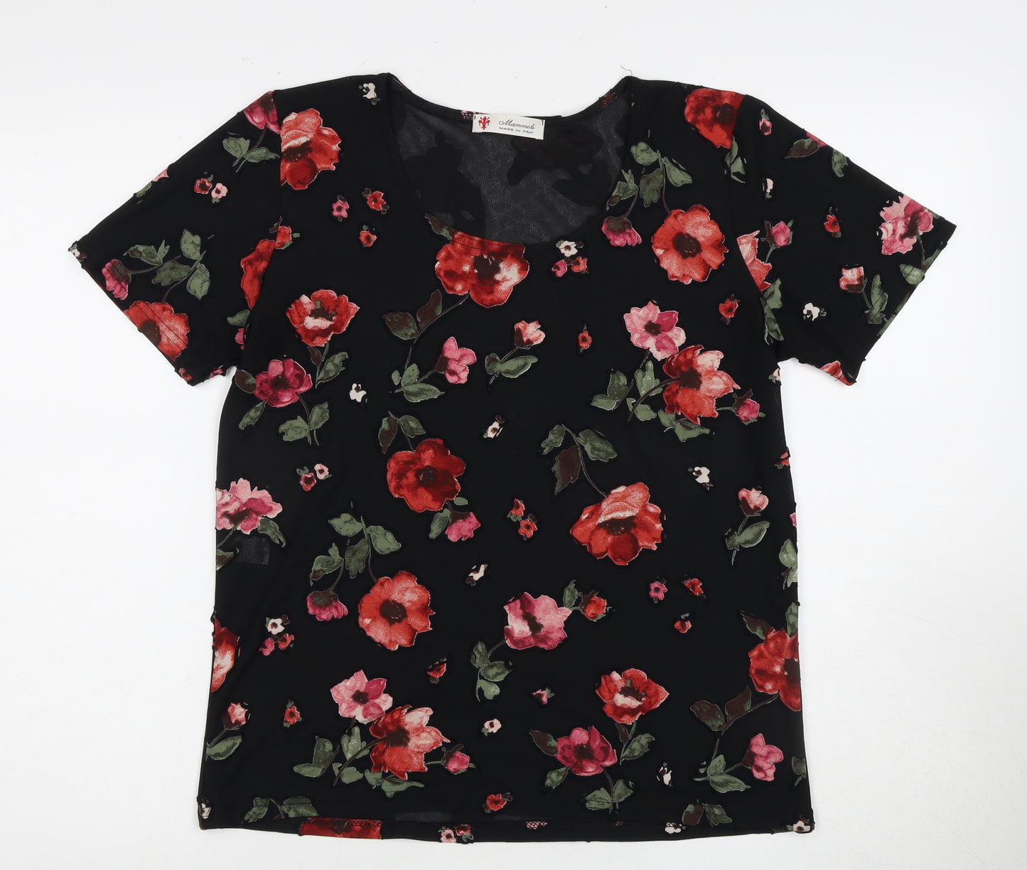 Embrace a perfect blend of comfort and style with this exquisite Mammoli Women's Floral Blouse. Designed for the modern woman, this blouse is crafted entirely from viscose, promising a soft and breathable wear. The timeless black canvas is adorned with vibrant floral patterns, adding a touch of elegance and femininity to your wardrobe. Its regular fit ensures comfort, while the round neckline adds a classic touch. Ideal for casual wear, it suits various occasions from brunch to casual evenings out. The fitted short sleeves provide a flattering look. This pullover style blouse is machine washable, ensuring easy care. Enhance your style effortlessly with this Italian-made staple.