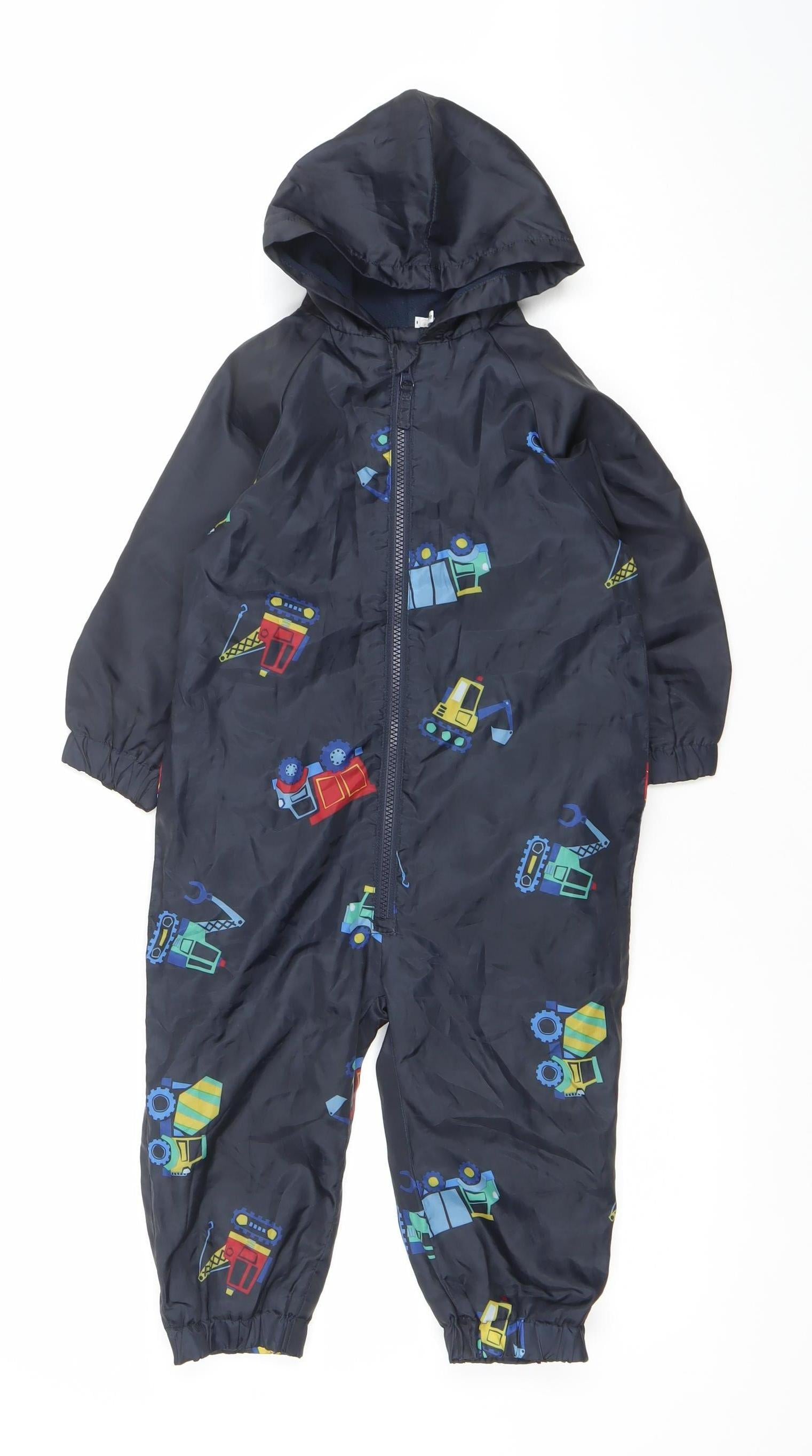 Boys Blue Vehicle Print Waterproof Hooded Rain Snowsuit 2-3 Years