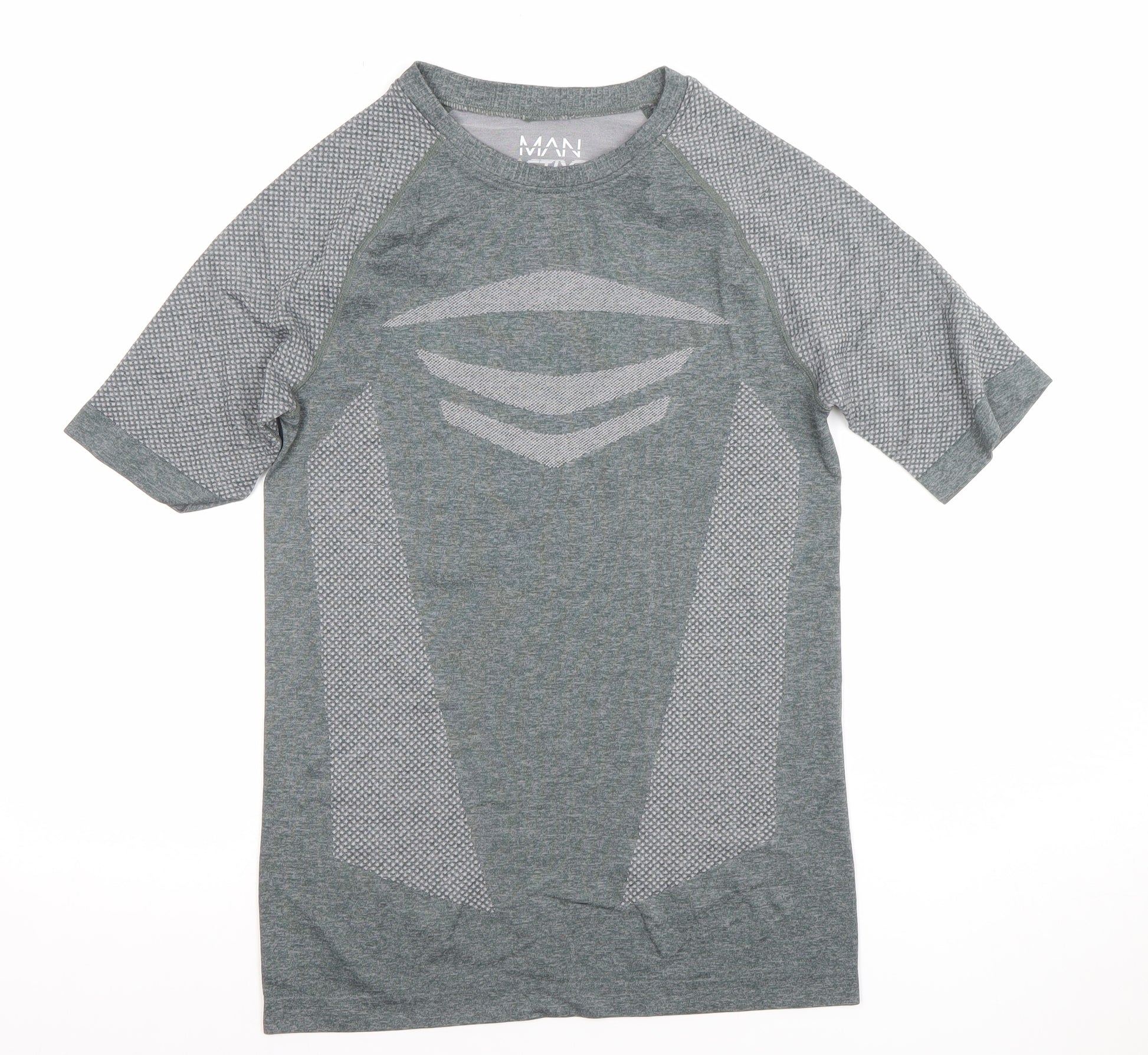 Take your workout style to the next level with this MAN Active short sleeve T-shirt, designed for modern men who value performance and comfort. Crafted in a sleek grey shade, this slim fit training top combines innovative materials for optimal functionality. The moisture-wicking and breathable fabric blend of nylon, polyester and elastane ensures that you stay cool and dry even during intense training sessions. Its lightweight design and stretch construction provide flexibility and ease of movement, perfect for gym workouts, running, or CrossFit activities. The T-shirt features a classic crew neckline with raglan sleeves for added shoulder mobility, while the MAN Active logo adds an athletic, stylish touch to the look. The solid grey pattern with subtle contrast weave panels creates a contemporary sportswear aesthetic. Made with durable, easy-care jersey knit fabric, this top is machine washable and designed to maintain its shape and performance wash after wash. Ideal for activewear across all seasons, this versatile piece is a must-have addition to your fitness wardrobe. Whether hitting the gym, running outdoors, or training hard, this MAN Active tee is built to support your goals in comfort and style. Lightly worn and in excellent condition, it offers the perfect balance between practicality and fashion-forward design – ready to enhance any fitness outfit. Upgrade your activewear collection and move with confidence wherever your workout takes you.