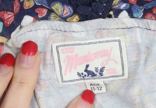 This vibrant Mandaray jumpsuit is perfect for your little fashionista. Designed in a lively multicoloured floral pattern, it will instantly brighten up any wardrobe. Ideal for casual outings or a lively party, this one-piece outfit promises both comfort and style for the 11-12 age group. Made from soft jersey cotton, it ensures breathability and ease of movement during spring and summer activities. The sleeveless design and elastic waist offer a relaxed fit, making it effortless to wear for any occasion. Dive into a playful day or sparkle at a family gathering with this charming floral jumpsuit. Its excellent condition signifies it's ready for new adventures, offering a delightful blend of fun patterns and comfortable fabrication.